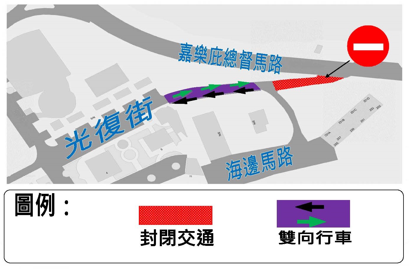 另外,氹仔光復街近嘉樂庇總督馬路的路段12月26日(周一)至29日(周四)封閉交通,光復街近迎賓館的路段實施只限特定車輛進出之雙向行車,以進行路面重鋪。