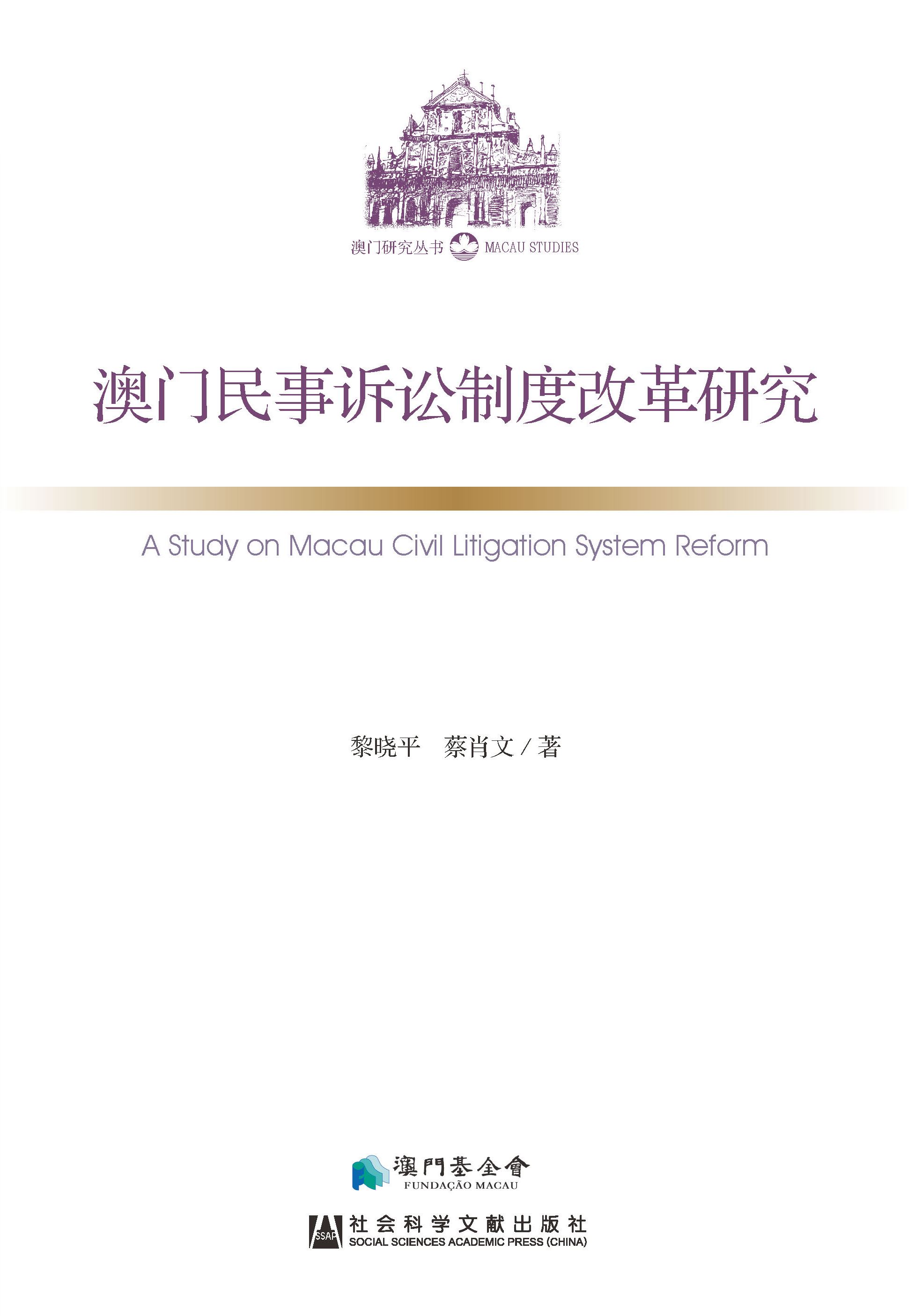 “澳門研究叢書”之一、由黎曉平及蔡肖文合著之《澳門民事訴訟制度改革研究》,經已由澳門基金會和社會科學文獻出版社聯合出版,並於全國及澳門地區同時發行。該書沿著澳門回歸前後法律本地化及現代化的脈絡,評析當中民事訴訟制度各項改革措施的成敗得失,並對澳門日後持續深入的法律改革工作作出期許。