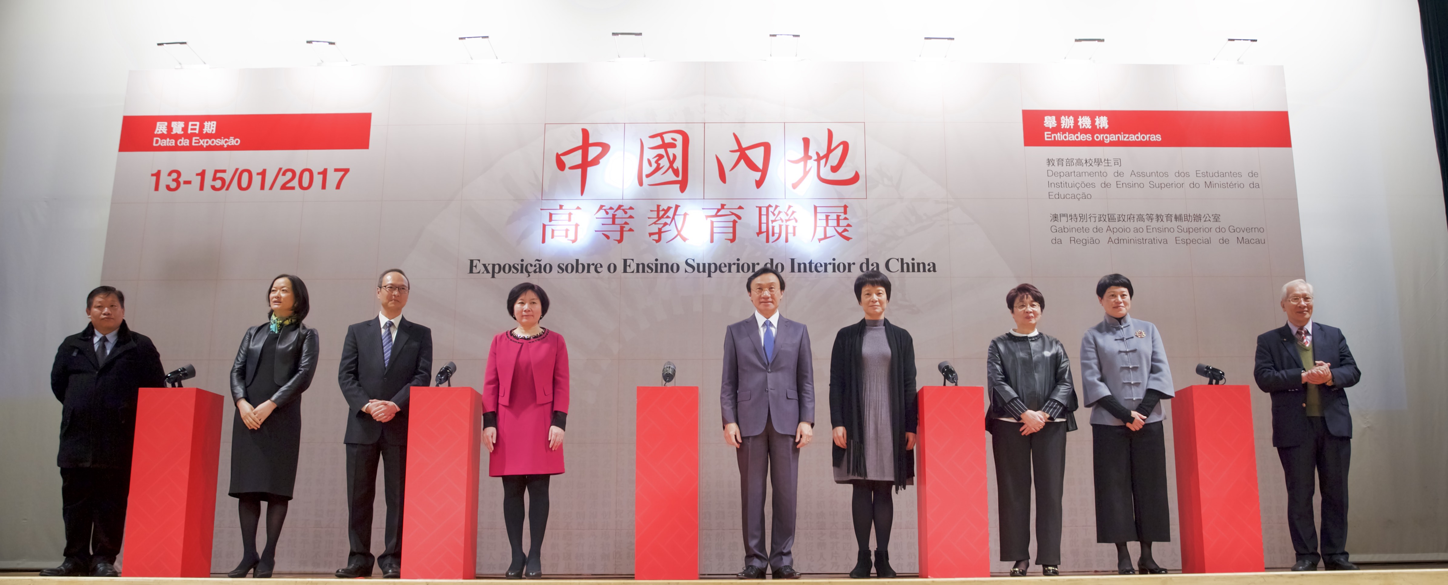 澳門特別行政區政府社會文化司司長譚俊榮博士、中國內地高等院校訪問團團長、教育部港澳台事務辦公室主任劉錦、中央人民政府駐澳門特別行政區聯絡辦公室文化教育部部長徐婷、高等教育輔助辦公室主任、研究生資助發放技術委員會主席蘇朝暉、教育暨青年局局長、學生福利基金行政管理委員會主席梁勵、澳門基金會行政委員會代主席鍾怡、澳門中華教育會理事長陳虹、澳門天主教學校聯會理事長郭華邦、澳門大專教育基金會理事長朱威權等主持開幕禮。