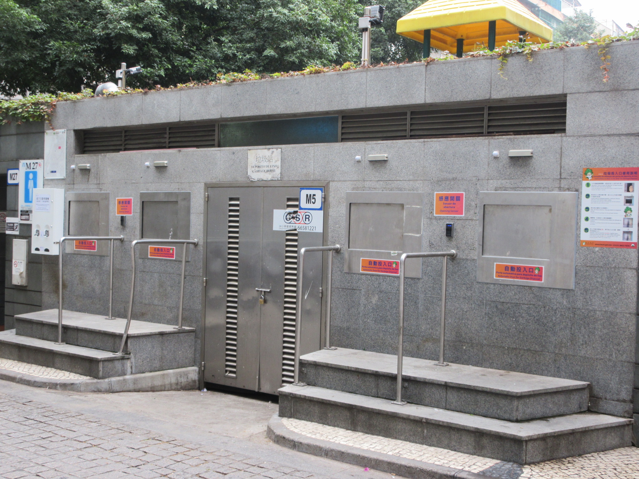 民政總署持續優化公共垃圾收集設施,選擇於合適的封閉式垃圾房投入口增設非接觸式感應開關裝置,進一步改善衛生條件及方便市民使用。有關裝置亦會按實際情況,陸續於其他封閉式垃圾房裝設。