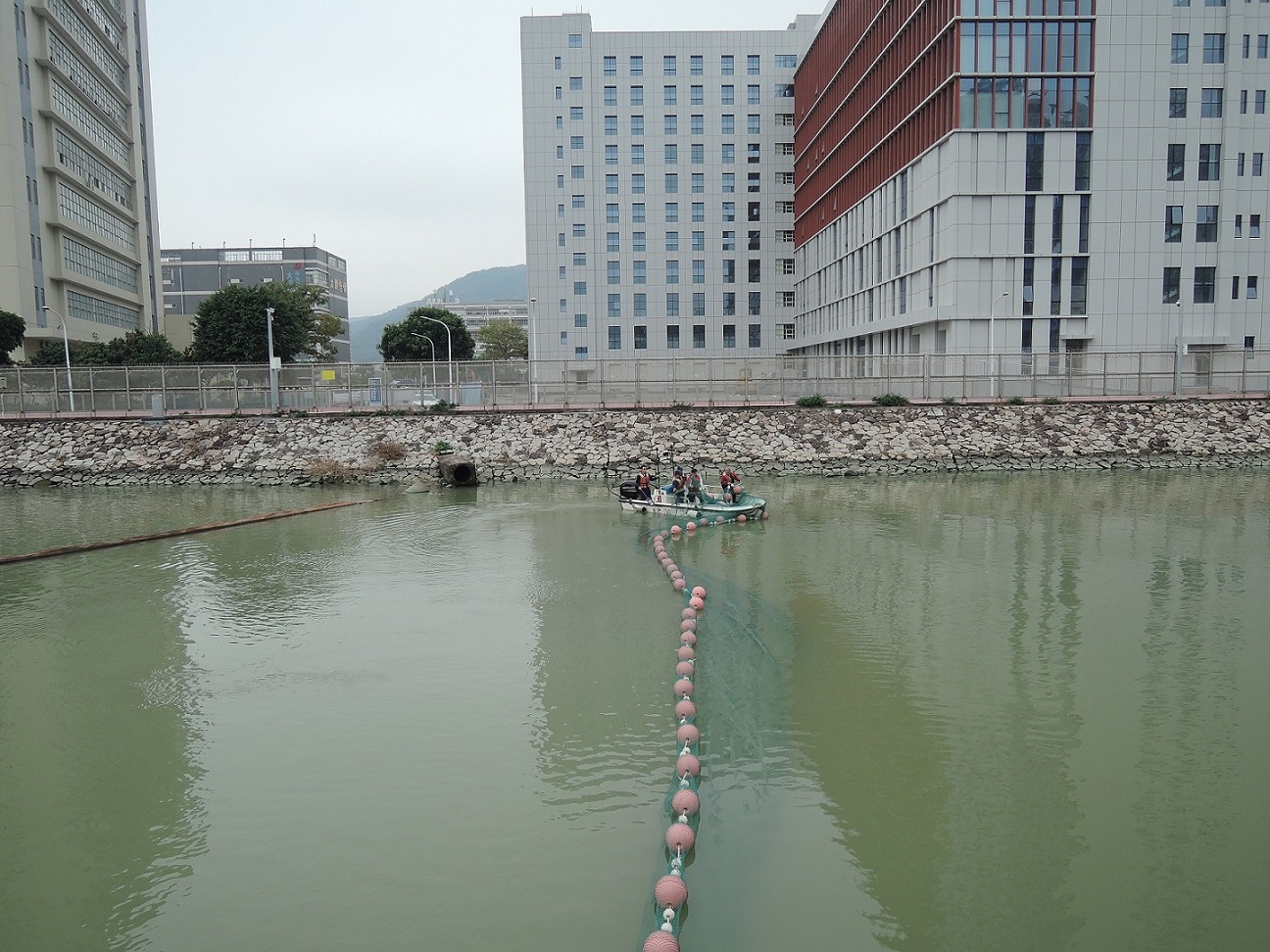 環境保護局經與內地相關部門協調後,已於本月中旬完成在鴨涌河河口設置攔魚網,以防若出現死魚時會隨潮汐飄入鴨涌河,減低對環境的影響。長遠會透過建設青茂口岸的契機,一併徹底整治鴨涌河。