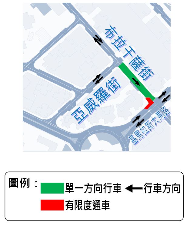 民政總署緊急維修下水道,1月24日(周二)起,介乎氹仔亞威羅街與基馬拉斯大馬路的一段布拉干薩街臨時改為單向交通,即車輛只可由亞威羅街往基馬拉斯大馬路方向行駛,而布拉干薩街與基馬拉斯大馬路交界則實施有限度通車,為期約7日。