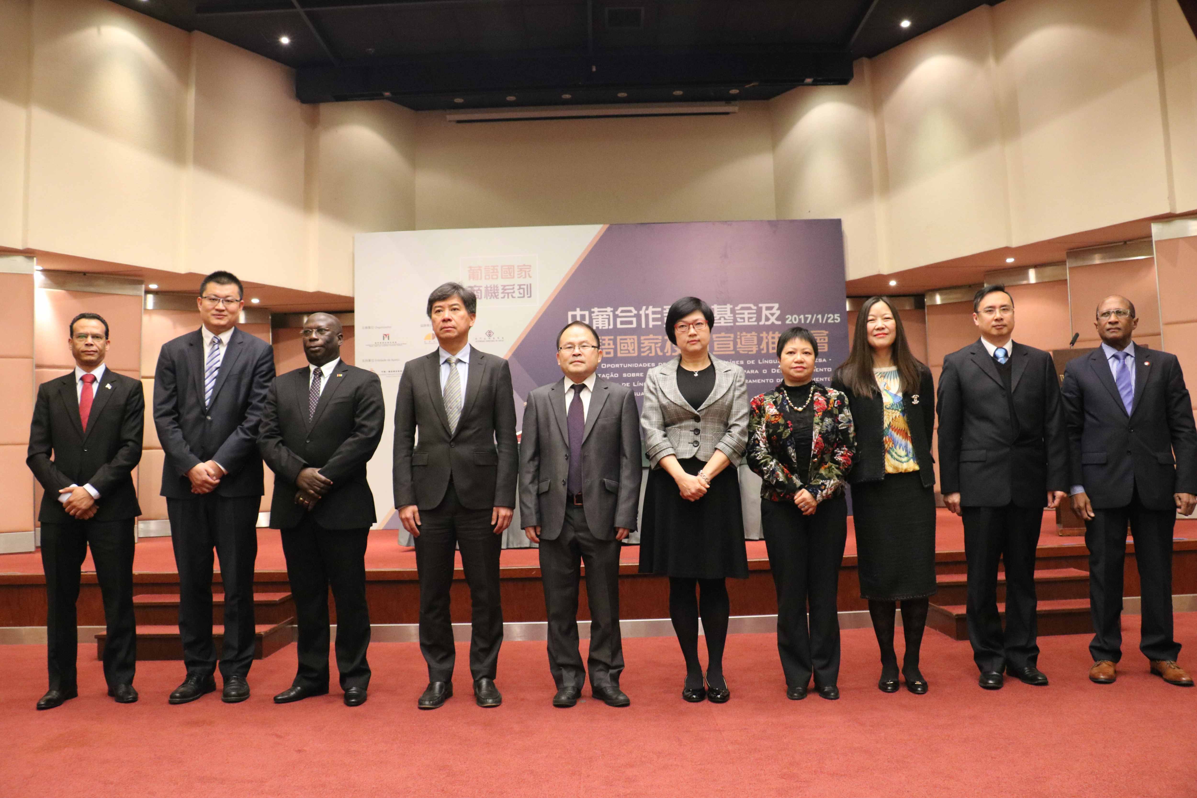 出席推介會的還包括中聯辦經濟部副部長級助理王家寶、經濟局副局長陳子慧、金融管理局行政委員黃立峰、中國 – 葡語國家經貿合作論壇(澳門)常設秘書處聯絡辦公室主任、幾內亞比紹派駐代表馬立文及財政局稅務稽查處處長容志聰等。