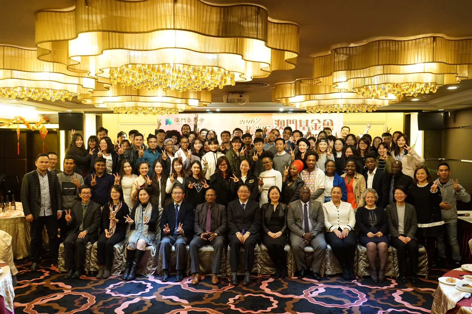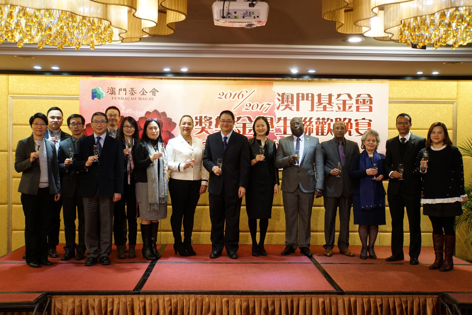 “2016/2017澳門基金會獎學金學生聯歡晚宴”於2月9日晚上七時正假澳門萬豪軒酒家舉行。晚宴出席嘉賓有澳門基金會行政委員會主席吳志良博士及副主席鍾怡、澳門大學全球事務部內地事務主任汪淇、澳門科技大學校長辦公室主任鄺應華、聖若瑟大學國際關係及區域合作辦公室主管施寶娜、澳門科技大學學生事務處處長黃嘉穎、澳門理工學院學生事務處處長李原、旅遊學院技術暨學術輔助部處長朱振榮、澳門大學老師張劍波、澳門城巿大學老師周春,澳門基金會獎學金處代處長李永芬及葡語學生獎學金事務代表巴愛蓮、中葡論壇幾內亞比紹派駐代表馬立文、中葡論壇佛得角派駐代表馬里奧 · 文森特、中葡論壇安哥拉派駐代表白敏龍。