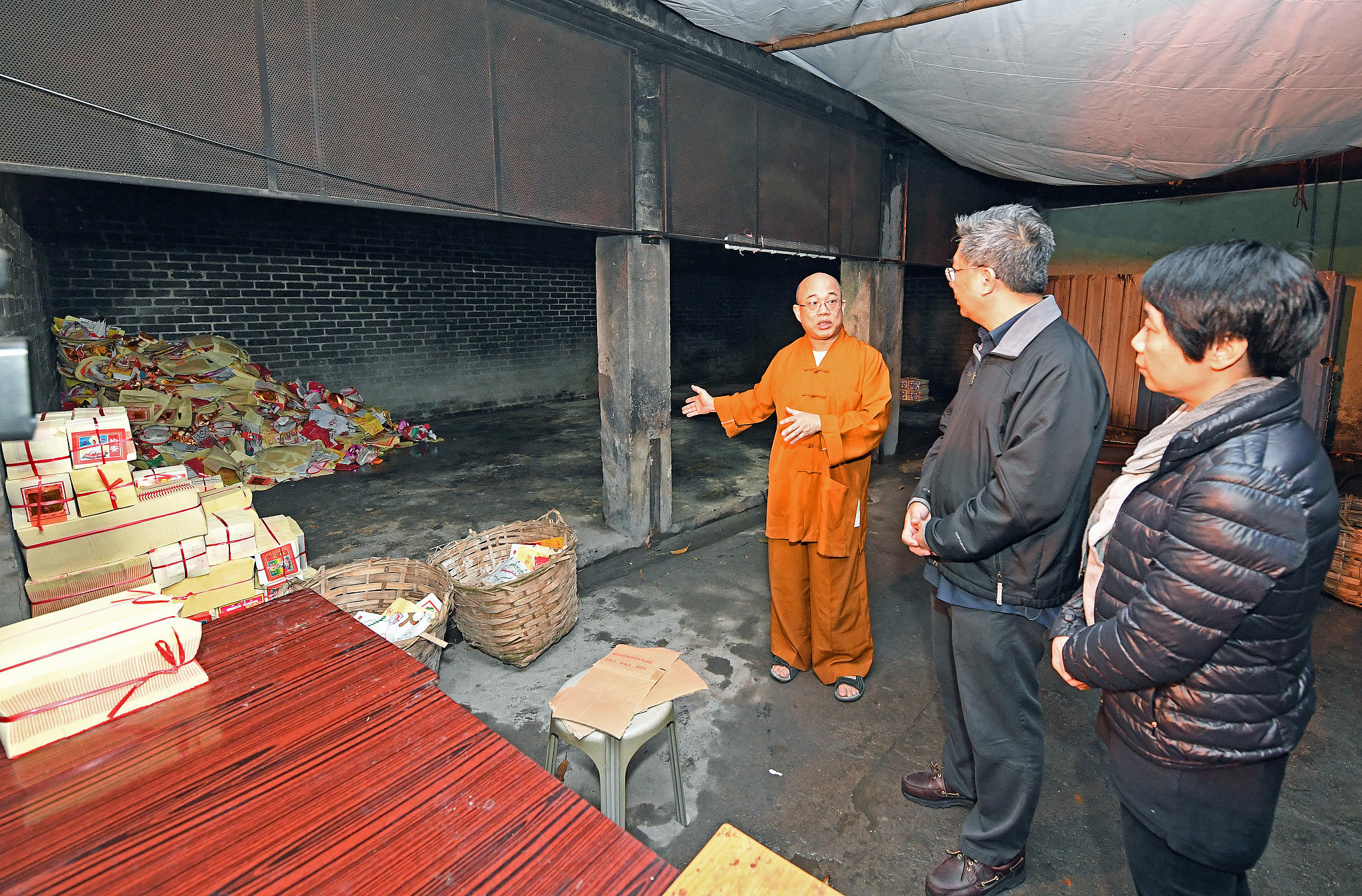 為進一步了解今年觀音開庫期間不作明火化寶措施的落實情況,文化局局長梁曉鳴、文化遺產廳廳長梁惠敏、文化遺產保護處代處長蔡健龍等於二月二十一日(星期二)晚上到普濟禪院(觀音堂)、蓮峰廟等舉行觀音開庫的廟宇進行視察,就廟方的配合及安排予以感謝及肯定,並對其成效表示滿意。文化局期望逐步將措施轉為恆常性,進一步加強澳門廟宇的消防安全。