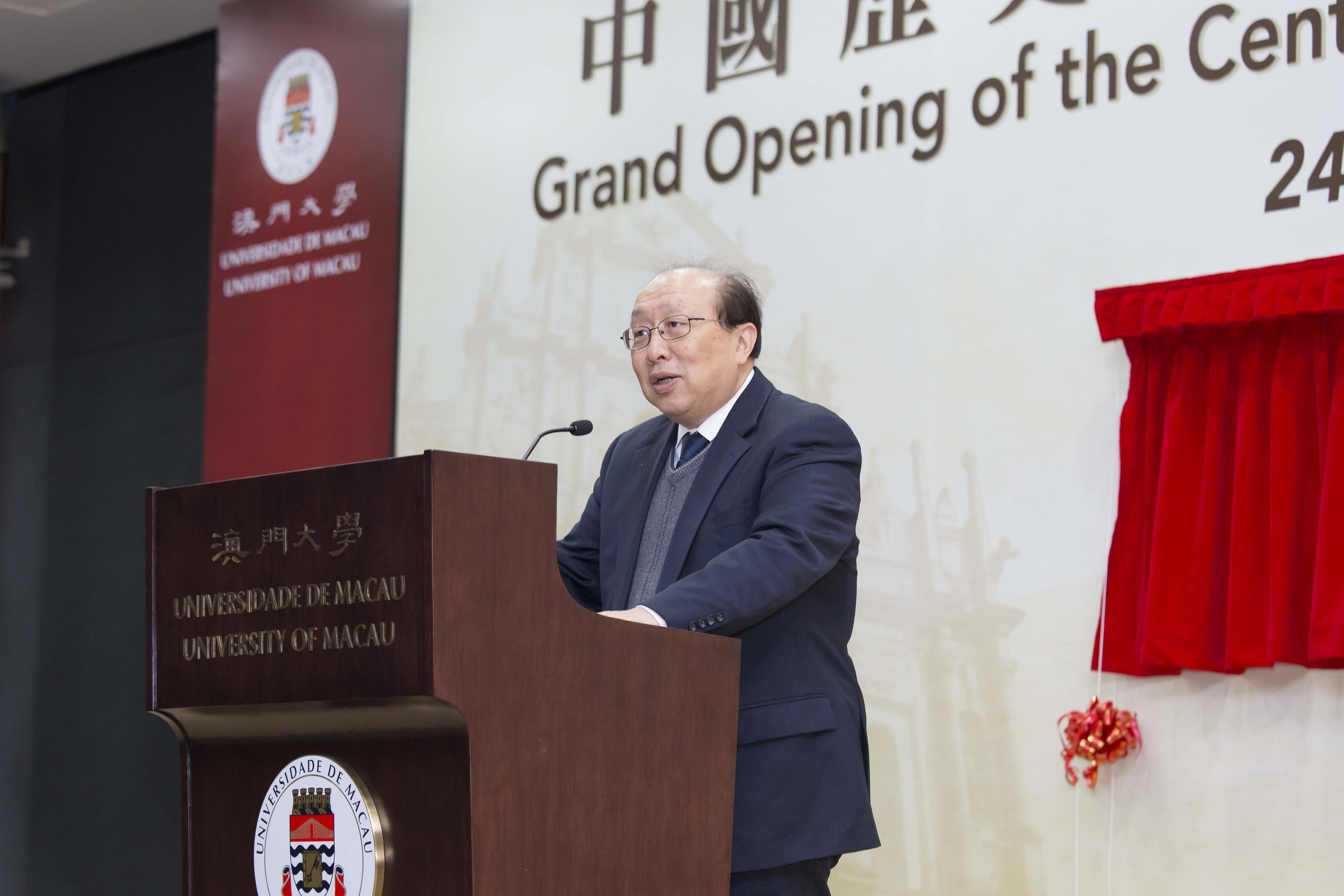 澳門大學今(24)日舉行澳大中國歷史文化中心開幕典禮。中心旨在加強中國歷史文化研究,推動中國歷史文化在葡萄牙語國家中的傳播與影響,並提高澳門居民對中國歷史文化的認識。代理行政長官陳海帆表示,隨著中心的成立,澳大一定能夠整合資源、發揮優勢,為研究和弘揚中國歷史文化做出卓越的貢獻。