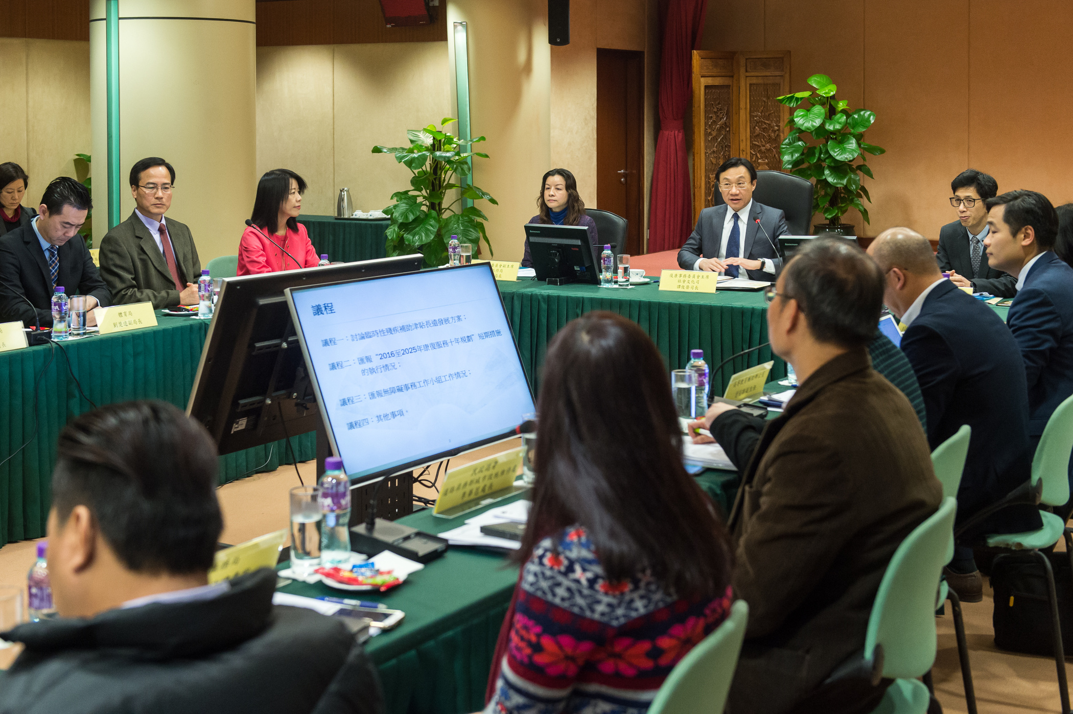 出席是次全體會議的還有復康事務委員會副主席兼社會工作局黃艷梅局長;社會文化司司長辦公室顧問何麗鑽;委員、代表和 “康復服務十年規劃跨部門策導小組” 的代表容光耀主席、郭惠嫻副局長、劉楚遠副局長、曾冠雄副主任、羅奕龍主任、孟瑞怡廳長、梁慧琪廳長、羅誠智廳長、李華苞處長、陸惠財處長、劉倩法律專家、周惠儀總幹事、何國明行政秘書、劉雪雯總幹事、區潔文理事長、尹偉儀理事委員會主席、韋妙琪副會長、盧紹霞理事長、李嘉輝副理事長、李浩旋院長、林劍如校長、梁雪梅主任、許彩嫻主任、劉中良主任、陳麗愉理事、黃俊毅先生、王國英先生、黎雄傑先生、鄺浩強先生、羅凱敏女士,與會人員有韓衛副局長、蔡兆源廳長、鄧詠詩處長、梁嘉輝處長、李桂馨處長、鄺光雄處長、郭杰平職務主管和蘇志群職務主管等。