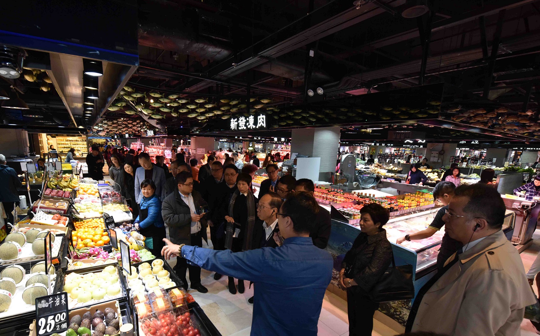 民署代表團一行在管理委員會主席戴祖義的率領下,於三月九日下午前往香港考察。代表團首先參觀了領展資產管理有限公司外判之青衣市場,由領展方面派員講解該市場的布局規劃及運作情況;代表團隨後抵達香港食物環境衛生署轄下的灣仔街市,受到食環署助理署長李家驥、灣仔區環境衛生總監劉志強等的接待,帶領代表團參觀灣仔街市並沿途作講解。