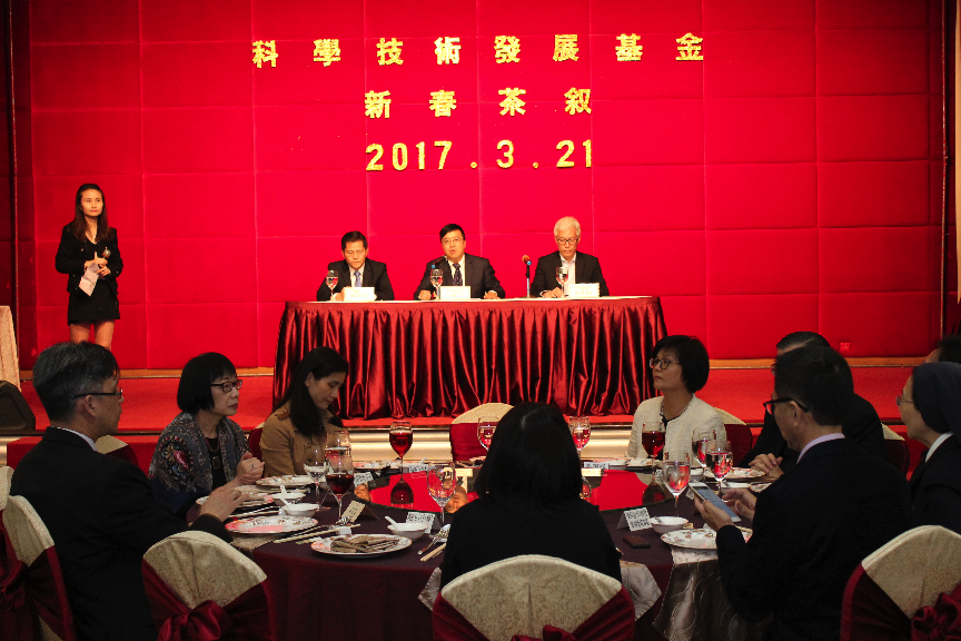 科學技術發展基金日前分別舉行學校及科普團體、科研機構新春茶敍,藉此加強對外的聯繫與溝通。科技基金行政委員會馬志毅主席、鄭冠偉委員及陳允熙委員總結及匯報2016年的工作成果。是次茶敍約有五十個科技社團、六所高等院校、四十三間中小學合共約二百六十名代表出席,為本澳的科技發展提供寶貴意見,科技基金充分聽取建議並作出回應,現場氣氛融洽、討論熱烈。
