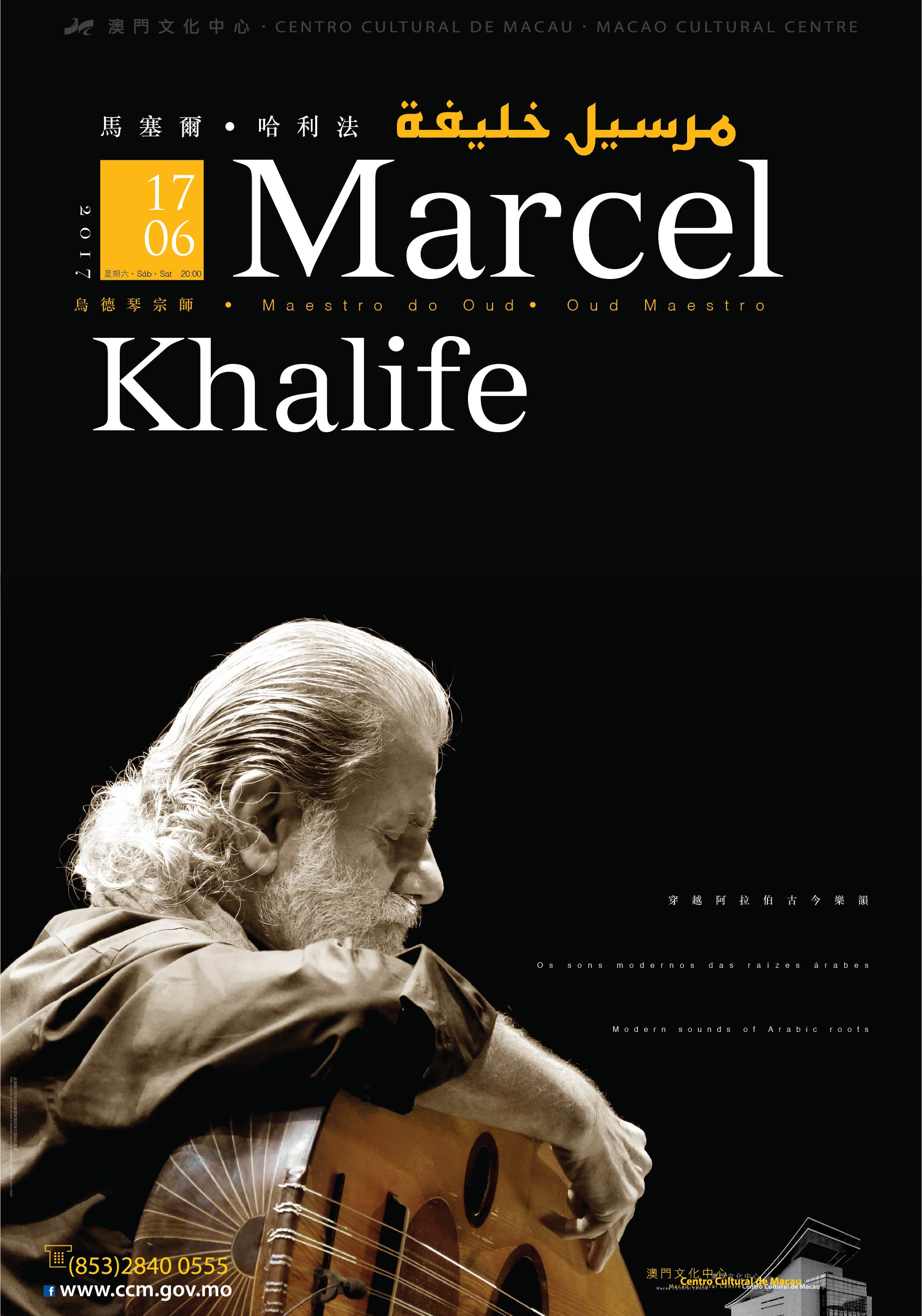 《馬塞爾.哈利法世界音樂會》將於二零一七年六月十七日(星期六)晚上八時於文化中心綜合劇院舉行,只演一場。票價分為澳門元二百五十、二百、一百五十及一百,門票將於四月二日早上十時起於澳門售票網公開發售。CCM摯友於開售首七天(即四月二至八日)內可獲八折優惠,其後九折優惠;學生及長者購買一百五十及一百圓門票可享半價優惠(數量有限)。購買相同票價門票十張可即時享有八五折優惠;此外,憑工銀卡購買門票可享九折優惠。購票請電二八四零零五五五,有關詳請瀏覽澳門文化中心網頁www.ccm.gov.mo 或致電二八七零零六九九。