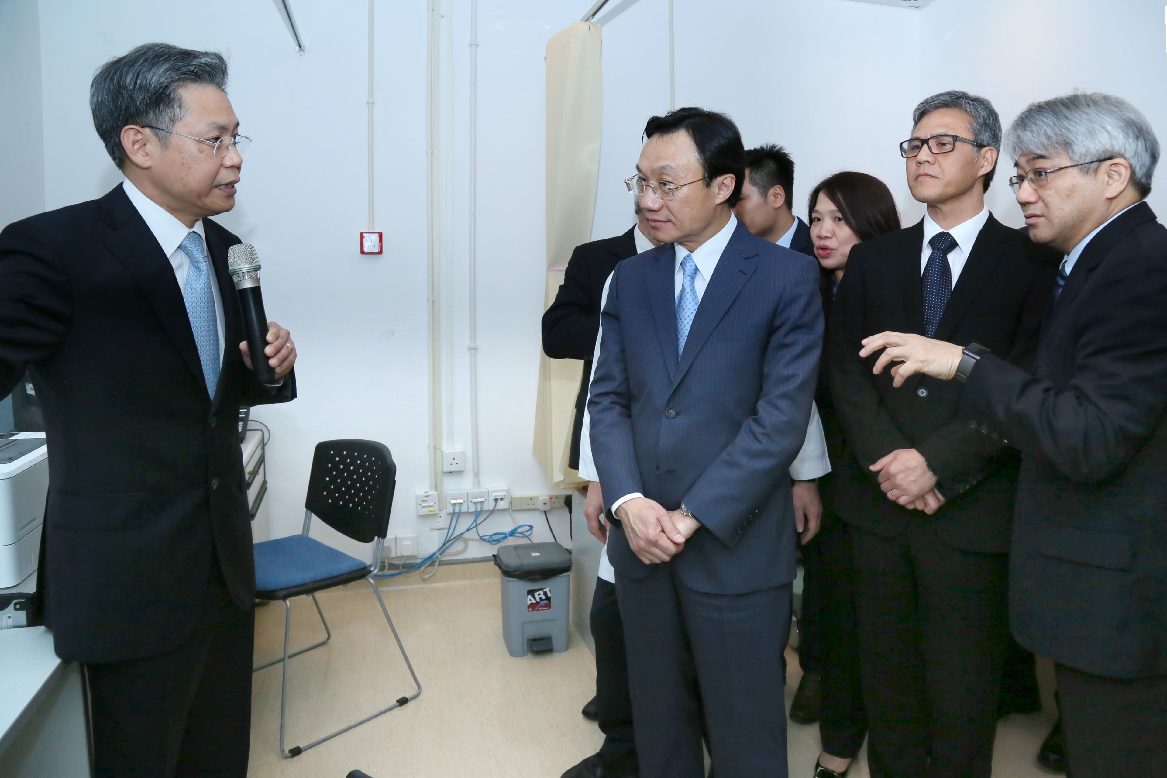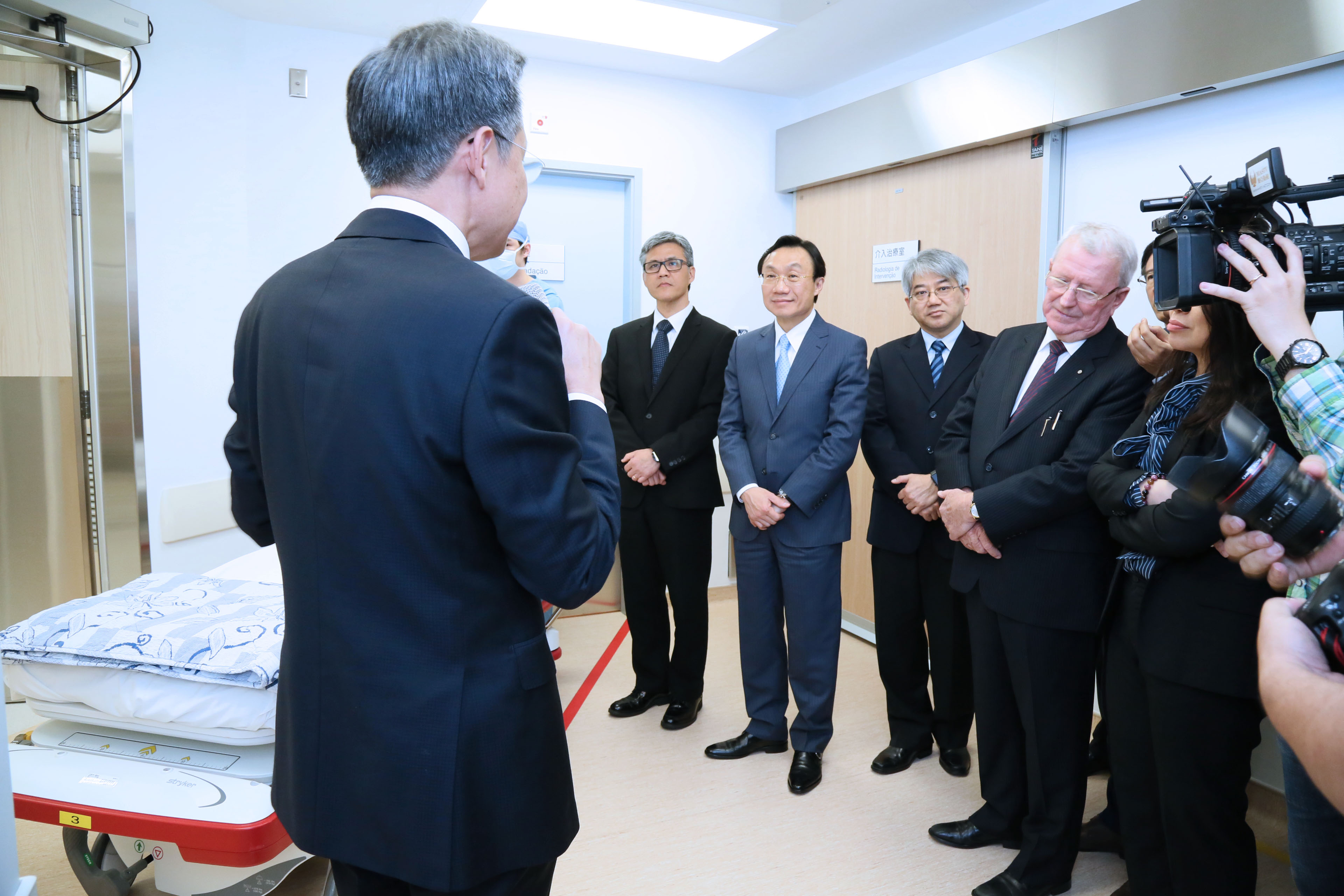 參觀中,仁伯爵綜合醫院郭昌宇院長介紹了最新型號的數碼乳腺X光攝影機,費用約為澳門幣440萬,其集合了2D乳腺攝影、3D乳房斷層攝影及立體定向乳腺活檢三個功能,將能提高診斷準確度。另外,還介紹了雜交介入手術室,工程連設備費用約澳門幣3,000萬,該手術室可進行微創介入手術,設有正壓設備,確保手術環境的安全。一眾嘉賓還到影像科集體閱片室觀看外周靜脈置入中心靜脉導管(PICC)手術實時傳輸影像,這套實時影像傳輸系統能讓有經驗的醫生或來澳交流的醫學專家實時觀察手術過程,促進醫療技術交流。