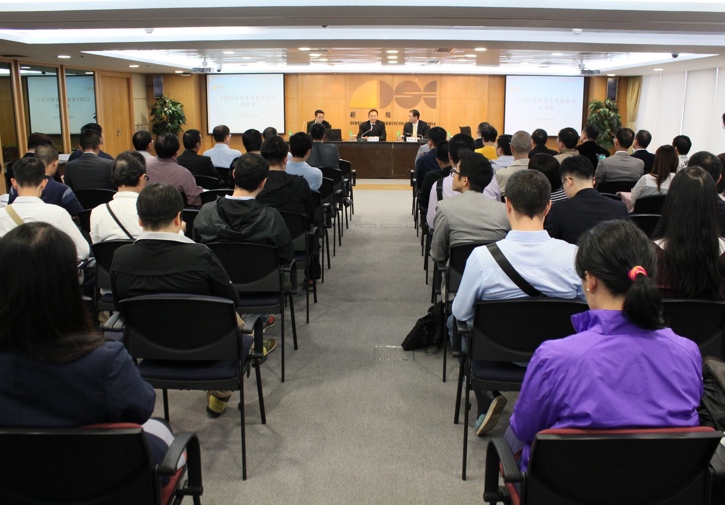 為進一步推動CEPA貨物貿易的發展,鼓勵本澳企業用好CEPA零關稅優惠措施,促進企業拓展內地市場,經濟局於4月6日舉辦“CEPA貨物貿易實施情況座談會”,邀請拱北海關原產地管理辦公室鄧偉光主任、曾慶文科長和馮豐科長來澳,向與會業界代表徵集對CEPA貨物貿易實施的意見和建議,並就國家自由貿易區的戰略情況作介紹。