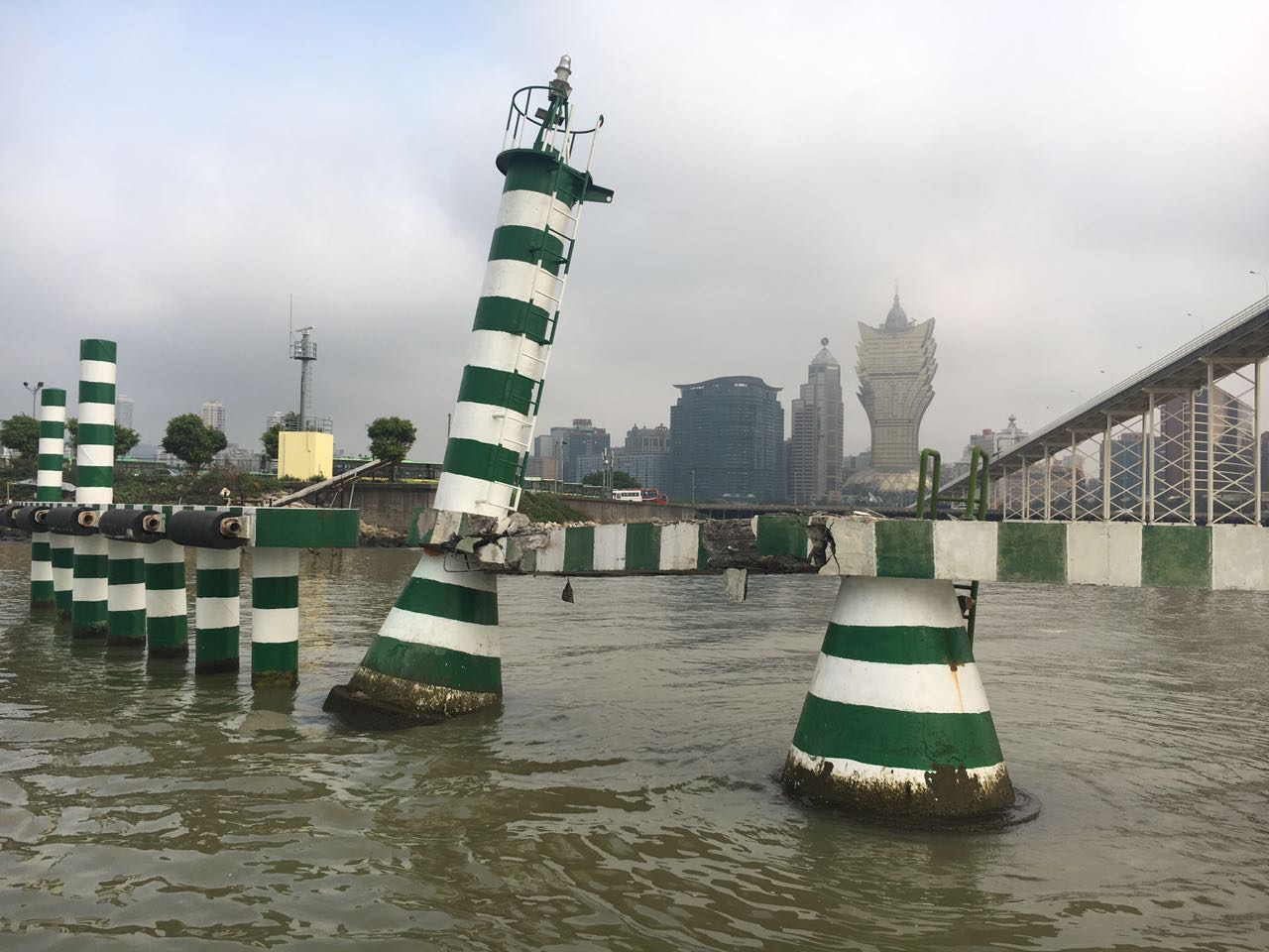 今早約凌晨二時,澳門船舶交通管理中心接報,兩艘內地貨船航經往內港航道時發生碰撞,兩船共17名船員均沒有受傷;肇事船均有不同程度的損毀,當中“粵惠州貨xxx”輸送帶損壞,“惠海龍xx”右舷駕駛樓受損。碰撞導致嘉樂庇大橋北護橋欄M17燈樁及其相連護橋樁嚴重受損,大橋未受影響;事故亦沒有對往內港航道的通航安全構成影響。