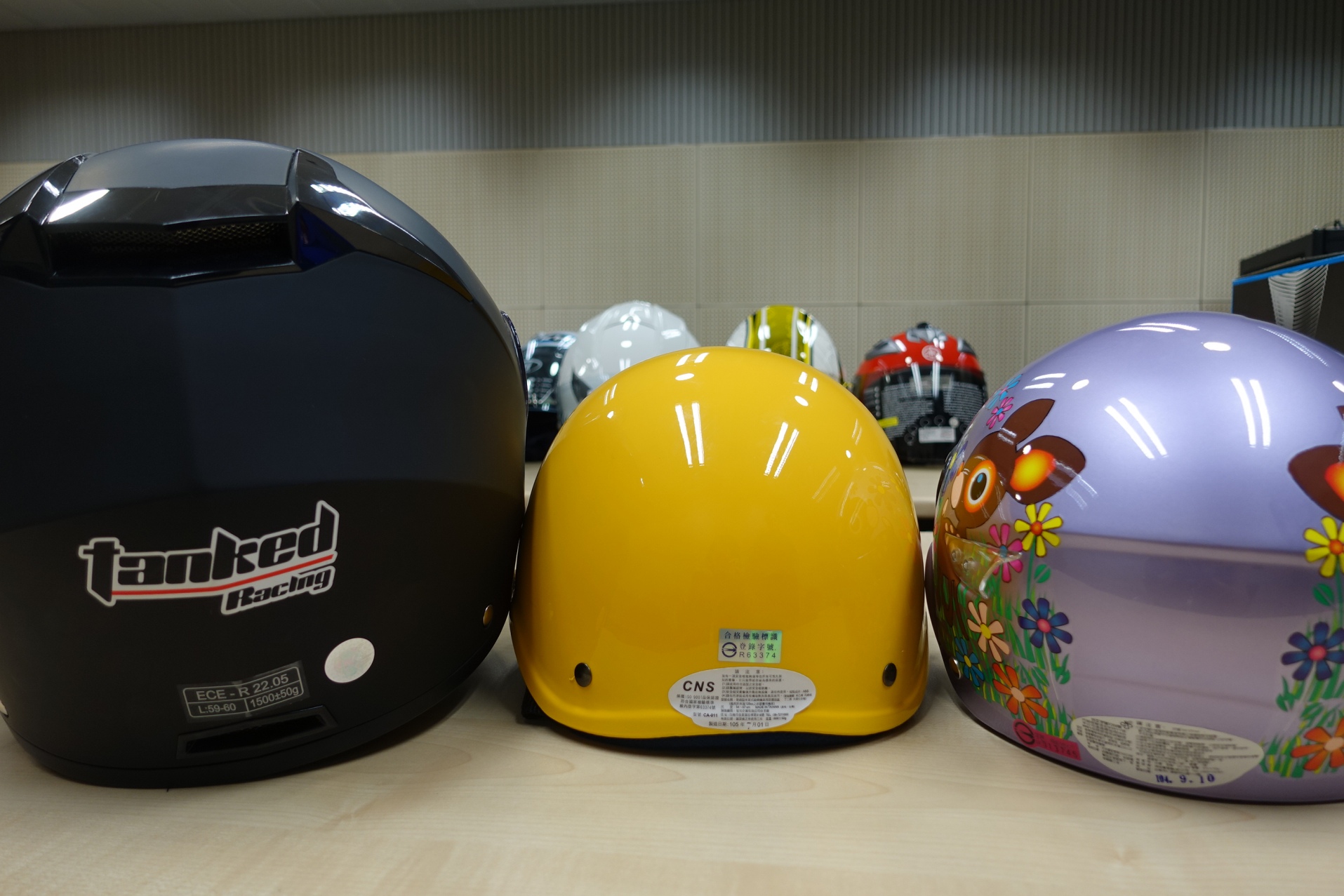 • 技術標準識別標籤一般張貼於頭盔背部,也有在內部。