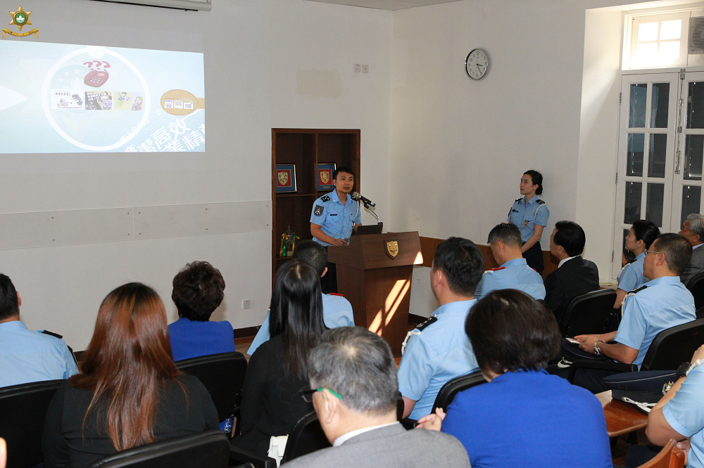 接著由交通廳的代表介紹近期交通形勢,包括警方打擊的士違規及白牌車活動、打擊車位佔用及檢控咪錶數等。稍後再由公共關係處警官進行防騙知識分享,主要介紹近期常見的電話詐騙案,分享騙徒常用的手法以及如何避免受騙知識,並介紹治安警察局即將舉辦的各項有關青少年的活動。簡報結束後,到訪嘉賓參觀交通廳新辦公大樓及設備,並與治安警察局警官於交通廳餐室內共同茶敍,進一步交流。