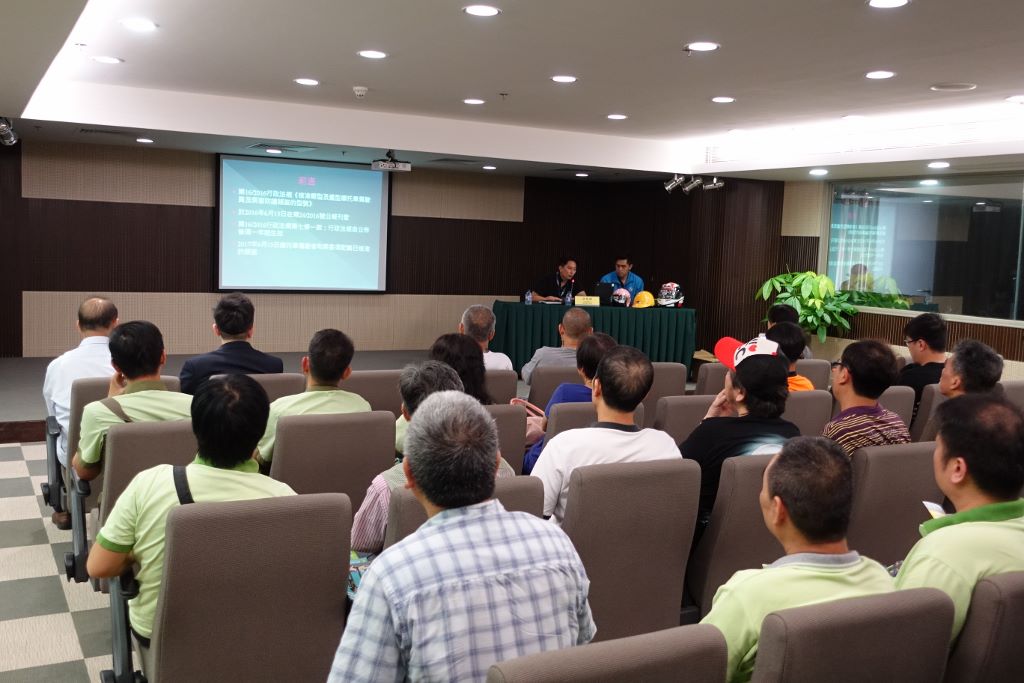 會上,局方人員介紹法規設立的目的、頭盔型號核准的申請流程、選購及使用時注意事項等。有與會者憂慮不懂上網而使用未經核准頭盔而觸犯法律,局方人員表示,如不懂上網可求助家人或朋友協助外,亦可到有誠信的頭盔銷售商或交通事務局查詢,因選用合乎技術標準的頭盔有助緩解衝撞受傷的作用,並有助減低交通意外引致的傷亡,為自身安全應選用合乎標準的頭盔。