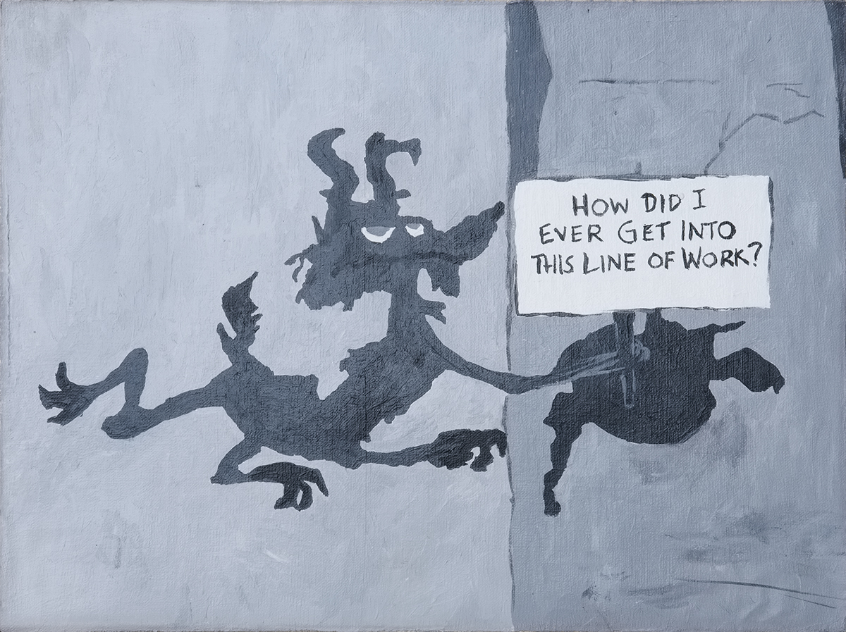 另一新作《岩石》,尼古拉斯呈現動畫《Road Runner》的沙漠景觀,作者運用白色織物創作了巨型的充氣裝置作品,透過穿越這個置於塔石藝文館中庭的作品,創造觀眾與藝術品之間的聯繫,以空間與身體的經驗作為藝術欣賞的方式,展覽充份活用塔石藝文館的展示空間特質。而最後一系列的作品《土狼在中國的冒險》則是尼古拉斯以動畫《Road Runner》中的角色“威利狼”為藍本創作,結合生活經驗及感想而創作,正好與充氣裝置作品《岩石》互相呼應。