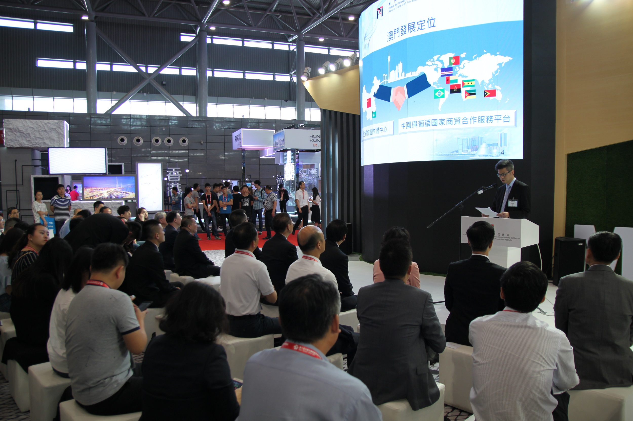 代表團17日上午出席了「中博會」開幕式及主題論壇。國務院副總理汪洋於領導巡館期間到澳門館參觀,張祖榮主席向汪洋副總理介紹澳門館之亮點,汪洋表示2018年將舉辦「中國進口商品展」,屆時希望展會能引進葡語國家產品參展。17日下午,由澳門貿易投資促進局與安徽省商務廳聯合主辦之中葡商貿合作「三個中心」及「中國 - 葡語國家經貿合作及人才信息網」推介會於澳門館內舉行。貿促局張祖榮主席致辭時指出,為了進一步推進中國與葡語國家企業交流合作,在中葡平台框架下,澳門正從線上、線下有序開展工作。在線上,「中國-葡語國家經貿合作及人才信息網」已開通了兩年,設有葡語國家食品資料庫;線下的「葡語國家食品展示中心」亦已運作一年多,內地多個省市包括安徽合肥也設有「葡語國家食品展示點」,方便內地客商和市民了解葡語國家產品,發掘商機。此外,安徽省商務廳許志寶副廳長、澳門葡語系國家地區酒類及食品聯合商會葉紹文會長亦分別發言,超過50名安徽省及澳門企業代表出席推介會。在中博會期間,澳門創建藥業科技集團與安徽亳澳創建醫藥科技發展有限公司簽署有關設立中醫藥生產基地項目,澳門創建藥業科技集團董事長黃瓊表示,該項目總投資約3,600萬美元,項目將會落戶於亳州蕪湖現代產業園,佔地106畂,建築面積達72,000平方米。