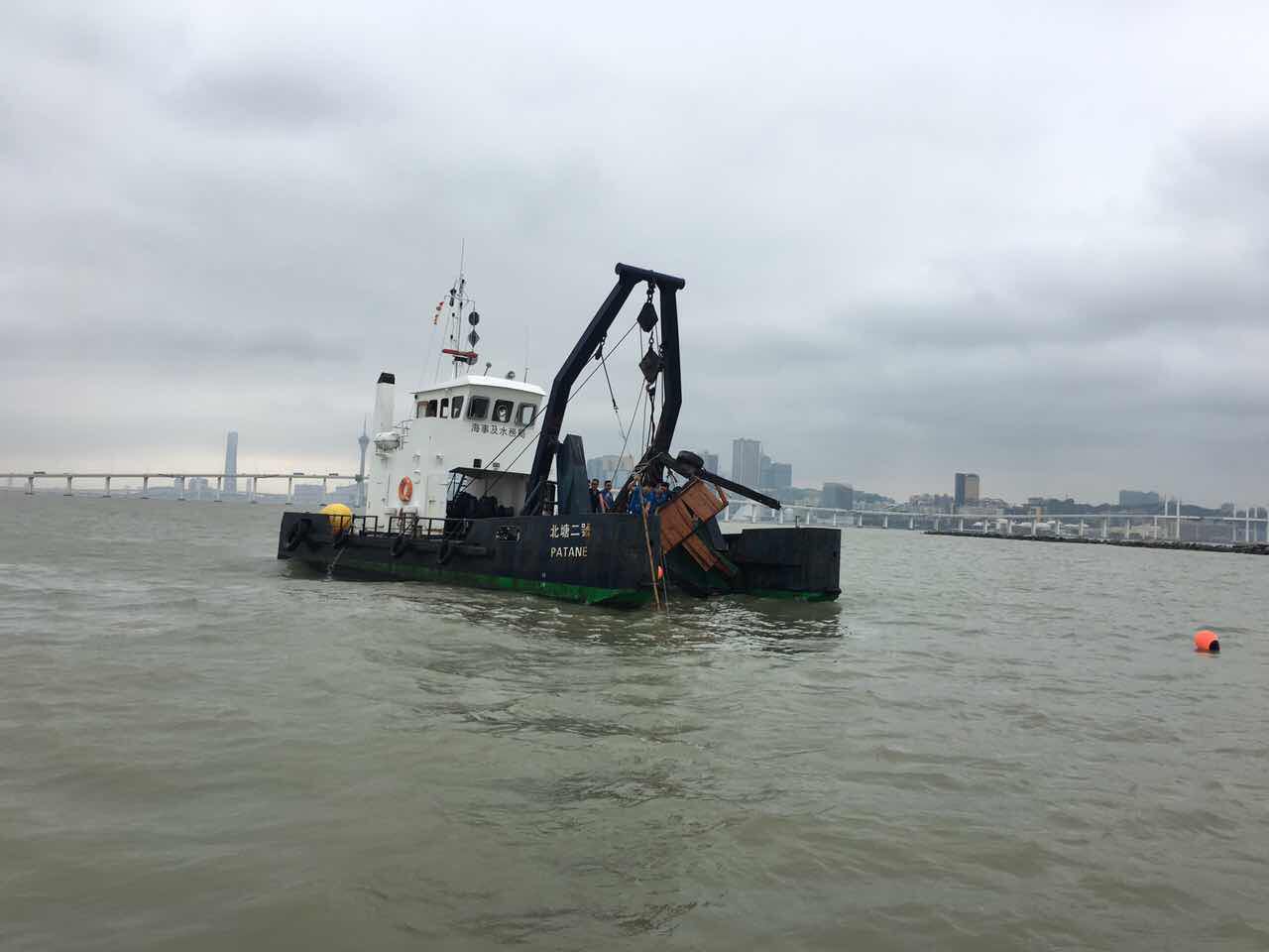 星期一(22日)下午約3時30分,船舶交通管理中心接報指一艘運砂船在機場跑以東海域入水,並有下沉危險。海事局即時向海關通報有關情況,並共同派出多艘船隻到現場協助。由於運砂船的入水情況嚴重,海事局安排該船臨時停泊在科學館對開海面,並用水泵協助船隻抽走積水。運砂船在抽走積水後恢復有限度自航的能力,其後在海事局與海關船隻護送下經十字門水道離開澳門海域。