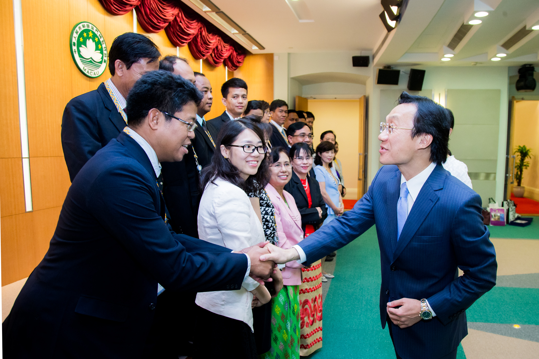 會面期間,譚司長與旅遊學院代表及學員們合照留念,而來自緬甸及朝鮮的學員代表分別向譚司長致謝辭,表示透過培訓課程,能學習旅遊方面的策略及管理知識,吸收澳門業界的寶貴經驗,將所學帶回自己的國家及地區。
