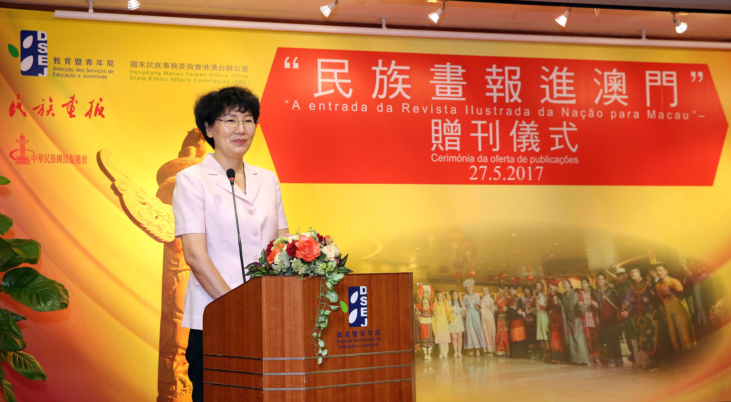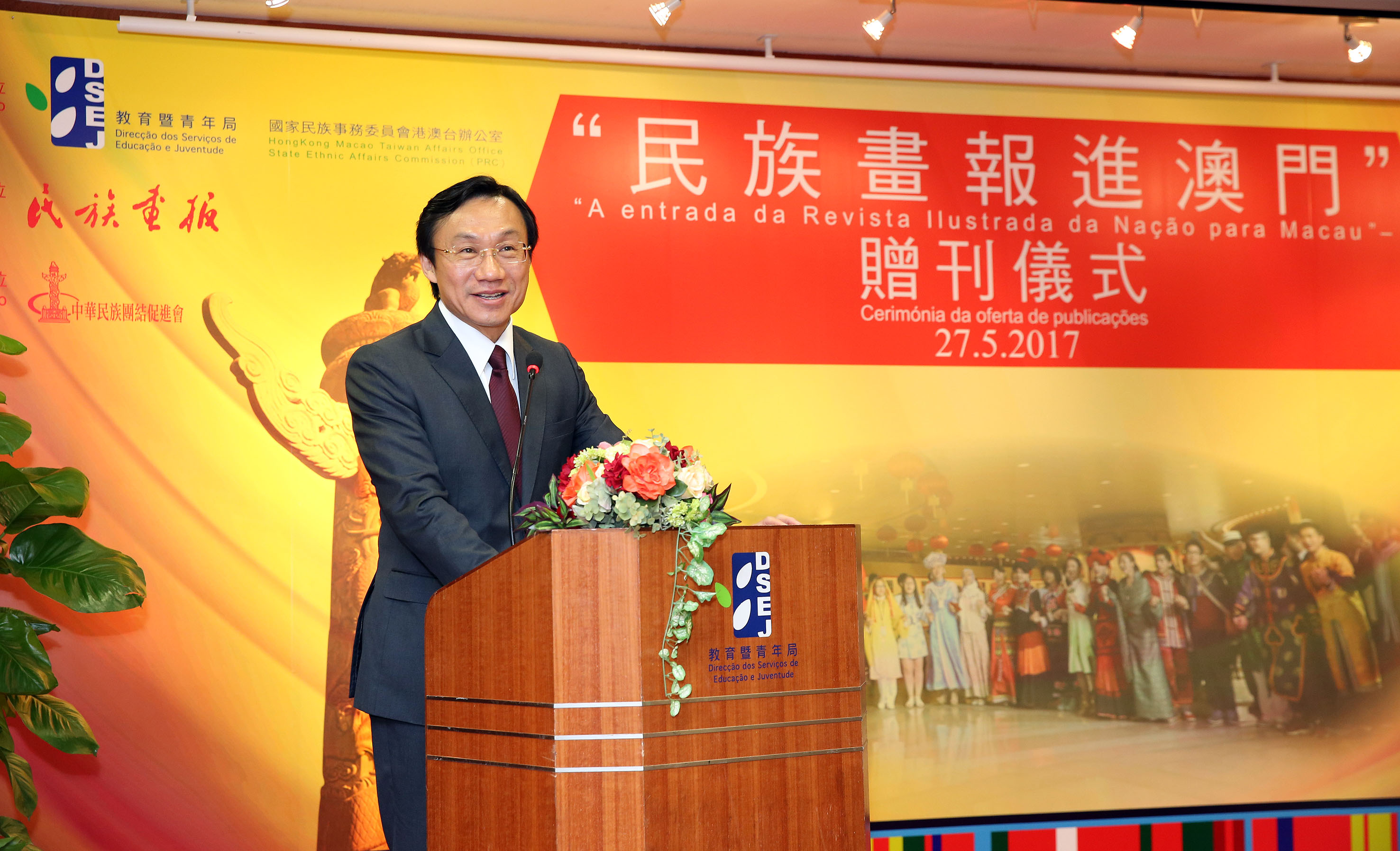 由教育暨青年局與國家民族事務委員會港澳台辦公室合辦、中華民族團結促進會承辦、民族畫報社支持的“民族畫報進澳門”贈刊儀式,於5月27日上午在教青局1樓仲尼堂舉行。社會文化司司長譚俊榮、國家民族事務委員會文化宣傳司司長武翠英、中央人民政府駐澳門特別行政區聯絡辦公室協調部副部長盛剛、教育暨青年局副局長老柏生、民族畫報社副總編輯虞暉、中華民族團結促進會會長黃永謙出席儀式,並擔任主禮嘉賓,向澳門各學校代表贈送“民族畫報”。