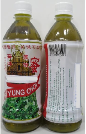 民政總署食品安全中心透過恆常食品檢測,發現一款由本澳生產之預包裝濃縮西洋菜蜜飲品中的苯甲酸含量未能通過檢測。民署高度關注事件,即時要求生產商及供應商停止出售及回收問題產品,並呼籲市民及業界應立即停止食用及出售。同時,由於產品亦有分銷至香港,已通報有關部門知悉及跟進事件。