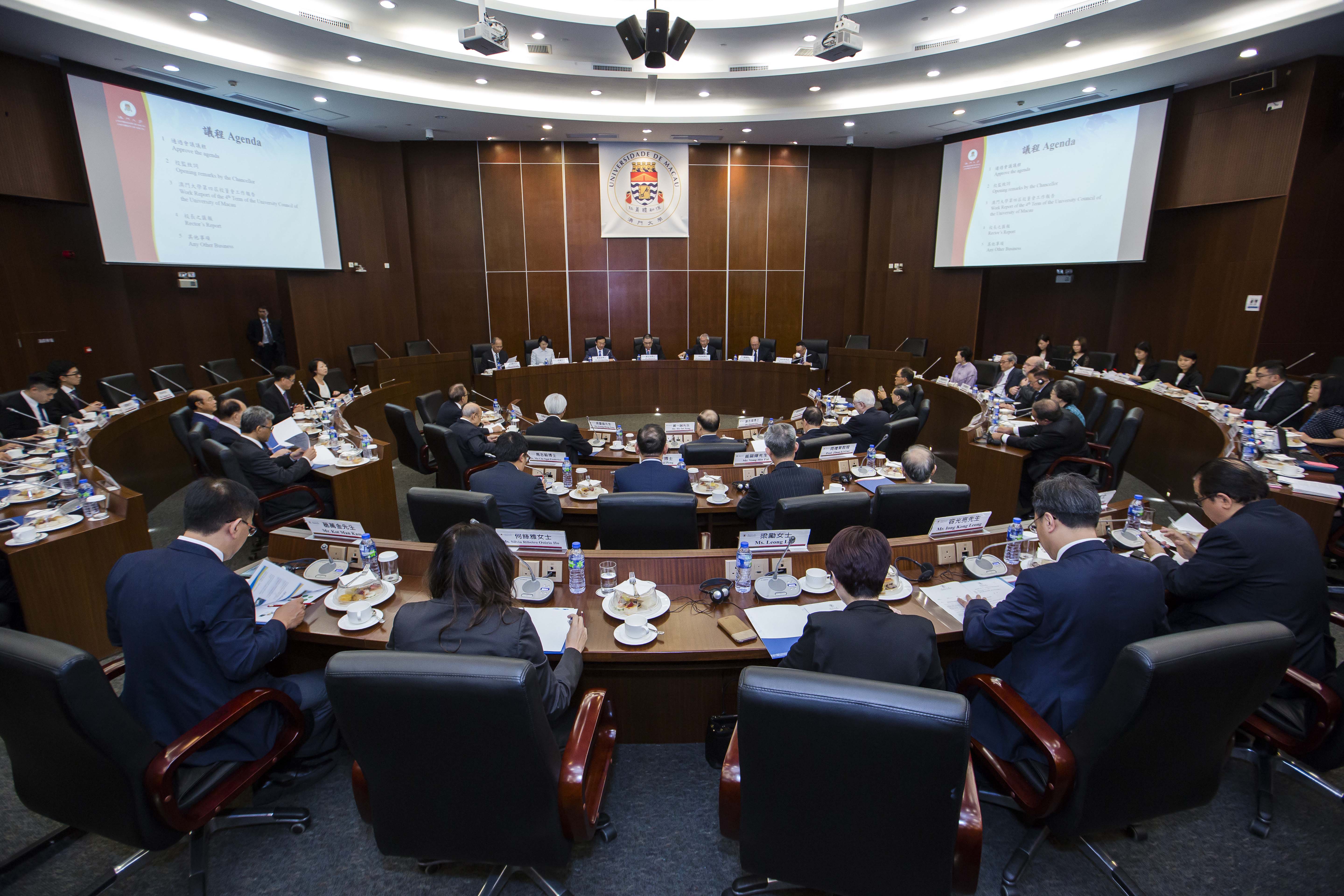 澳大大學議庭及校董會由社會賢達、澳大管理層,師生代表、校友代表組成,出席是次聯席會議的有:崔世安、林金城、李沛霖、劉永年、吳福、吳榮恪、邵賢偉、周禮杲、施綺蓮、賀一誠、華年達、劉炯朗、黎鴻昇、霍震寰、鄺達財、謝志偉、唐志堅、馬志毅、高錦輝、崔世平、梁慶庭、黄顯輝、葉炳權、梁勵、容光亮、何絲雅、趙偉、倪明選、馬許願、程海東、高薇、蘇育洲、陳俊龍、姚偉彬、林玉鳯、區秉光、葛萬金、梁景倫、何兆冬、以及大學議庭秘書兼校董會秘書長陳煥賢。列席會議的有社會文化司司長譚俊榮,行政長官辦公室主任柯嵐等。