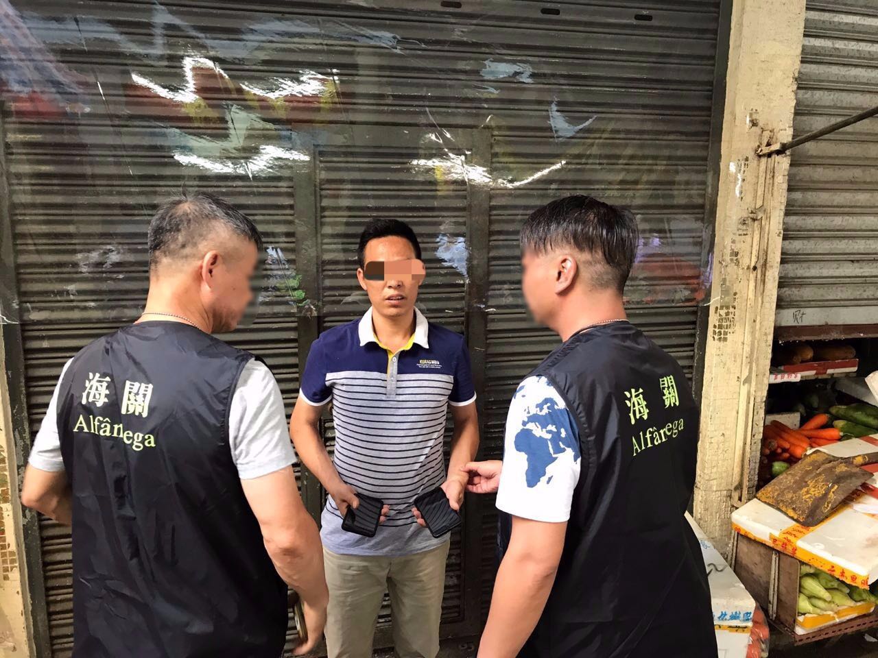 海關接報後,隨即展開調查工作。至本月十一日,海關便衣關員在義字街巡查時,發現一名男子手持一部電話不斷向途人兜售,關員隨即表明身份,在該名男子身上搜出兩部懷疑假冒「IPHONE」商標的手提電話。與此同時,治安警出入境事務廳根據舉報者提供的資料,於十二日中午在關閘口岸截獲該名向舉報者售賣冒牌手提電話的涉案者,並於當日送交海關跟進,關員在該名嫌犯身上再發現兩部懷疑假冒「IPHONE」商標的手提電話及一萬多元現金,懷疑是非法所得的金錢。被海關扣查的合共六部手提電話,經品牌權利人代表鑑定,確認全部為假冒產品。