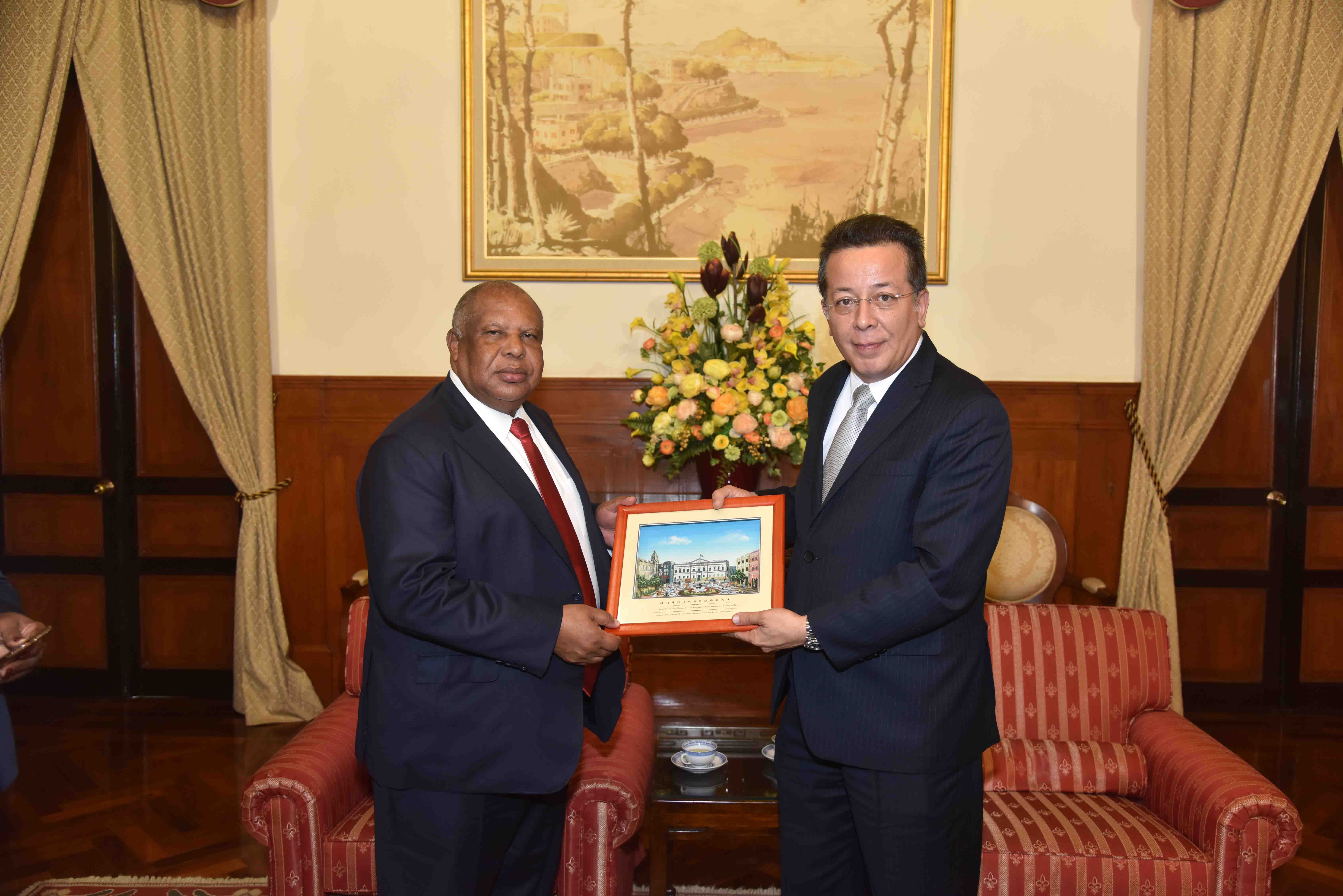 由葡語國家首都城市聯盟會員大會主席、安哥拉羅安達省省長卡內羅(Higino Carneiro)率領一行十人的代表團禮節性拜訪民署,參觀了民政總署大樓並進行交流。戴祖義表示,澳門特區政府正致力強化澳門作為中國與葡語系國家食安平台的角色,並發揮澳門作為“葡語國家食品集散中心"的作用,加強食安領域的合作機遇。戴祖義相信,透過民署食安中心的溝通渠道,可加強中國與葡語國家之間的聯繫,深化雙方在食品檢驗方面的相互了解,從而確保中國與葡語市場貿易中的食品質量,提高消費者的信心,以及加速產品進入市場的程序。