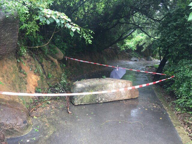 另外,氹仔大潭山環山徑(標距柱位置2-01-13至2-01-14路段)今早出現大石滑落情況,因大石阻礙通行,上址路段將暫時封閉,敬請市民留意。民署亦呼籲市民,於惡劣天氣及暴雨期間避免於樹下逗留或進入林區。