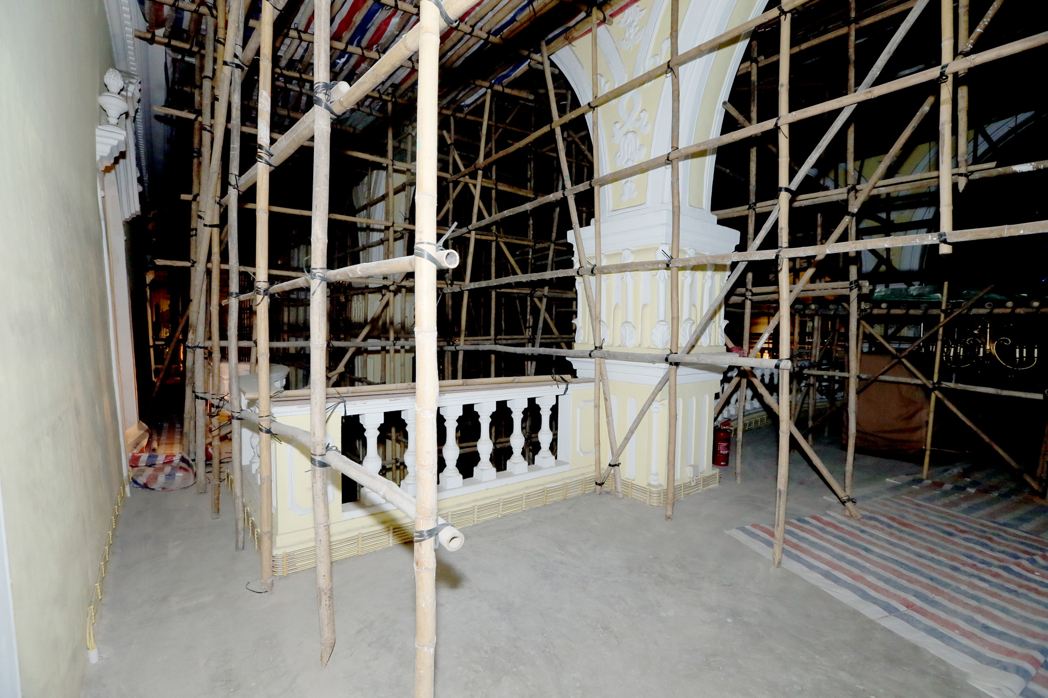 文化局已將六國飯店報告呈交社會文化司司長審視。報告提及一九九八年六國飯店已殘危,對公共安全構成危險,當時土地工務運輸司經諮詢文化司署等意見後,在保留及加固立面的前提下拆除建築物其餘所有部份,因此當時六國飯店內部已完全被拆除,只餘外立面;其後外立面亦持續惡化,多次出現石屎剝落情況;而《文遺法》生效後,文化局約見業權人,要求對方必須對飯店倒塌的外牆按原貌復原,同時實施多項保護工作,並多次與業權人及其設計團隊協商,除恢復外立面外,亦要求在未來工程中留有一定空間,重現過往飯店內的重要建築特色。文化局又積極向其提供各類歷史資料,在最大程度上重現原有的室內空間特色。現時,只待權限部門發出工程准照後即可施工。此外,聖奧斯定教堂已在二零一六年完成偏廳修復工作,文化局同時進行大型檢測工作,計劃於未來三星期內開始屋頂加固工程,爭取於今年十月底完工後重新對外開放。