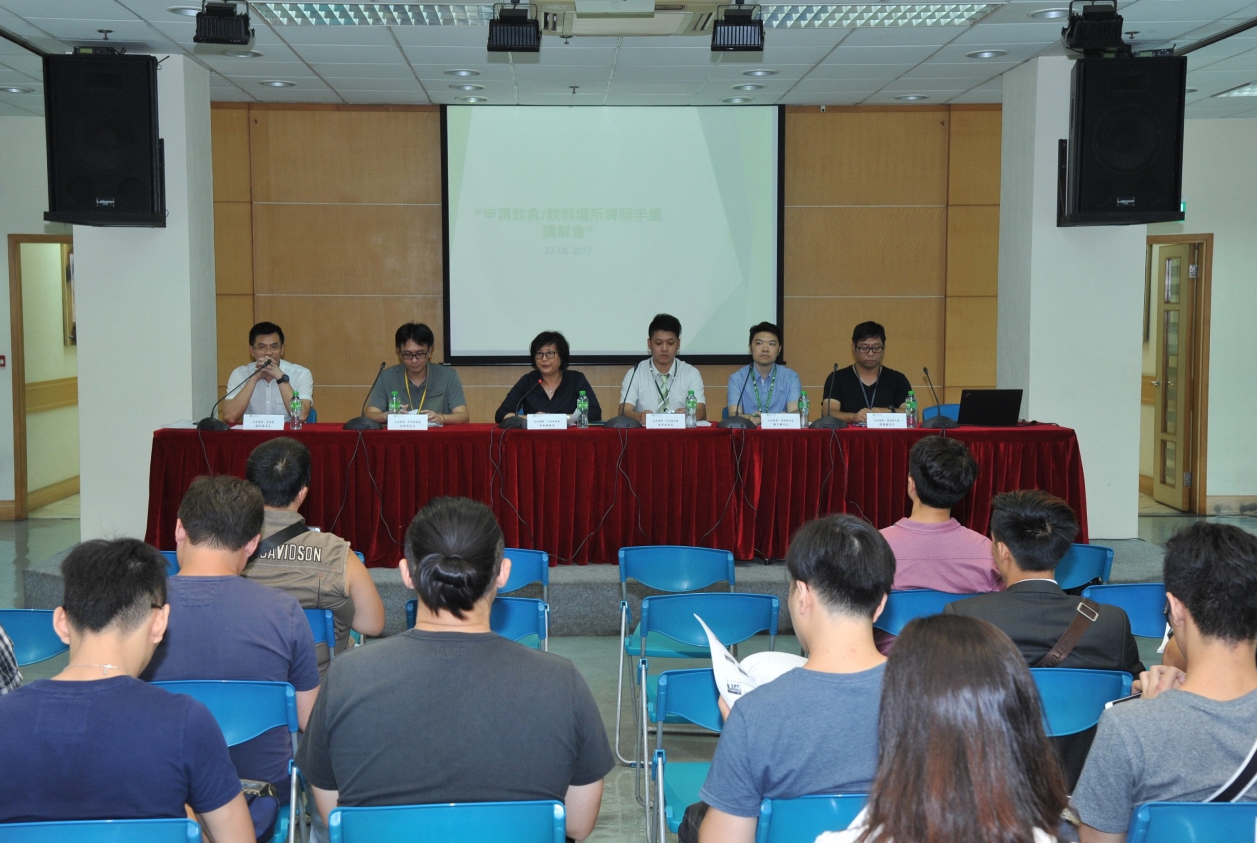 講解會於六月二十七日下午三時在營地活動中心舉行,由民署轄下參與發牌的專責部門解釋申辦牌照常見的問題。負責飲食及飲料場所一站式發牌服務的代表介紹申辦有關牌照程序中常見的問題,如場所須具備的條件及空間面積要求、遞交文件須注意的事項,並建議申請人可透過技術會議,與專責部門代表直接對話,清晰各項申請細則和技術要求,從而避免申請因不符合規定而須重新或多次修改的情況;環境衛生處代表則介紹排煙系統油煙過濾設備要求、經營場所及工程計劃產生廢料垃圾的處理,以及飲食場所的防治鼠患措施;食安中心管理規劃處代表介紹食品安全方面須注意的事項,如食品處理區設備、運送食物的設施要求等;渠務處代表講解隔油井設置常見的問題,如隔油井的容積及配件規格等。