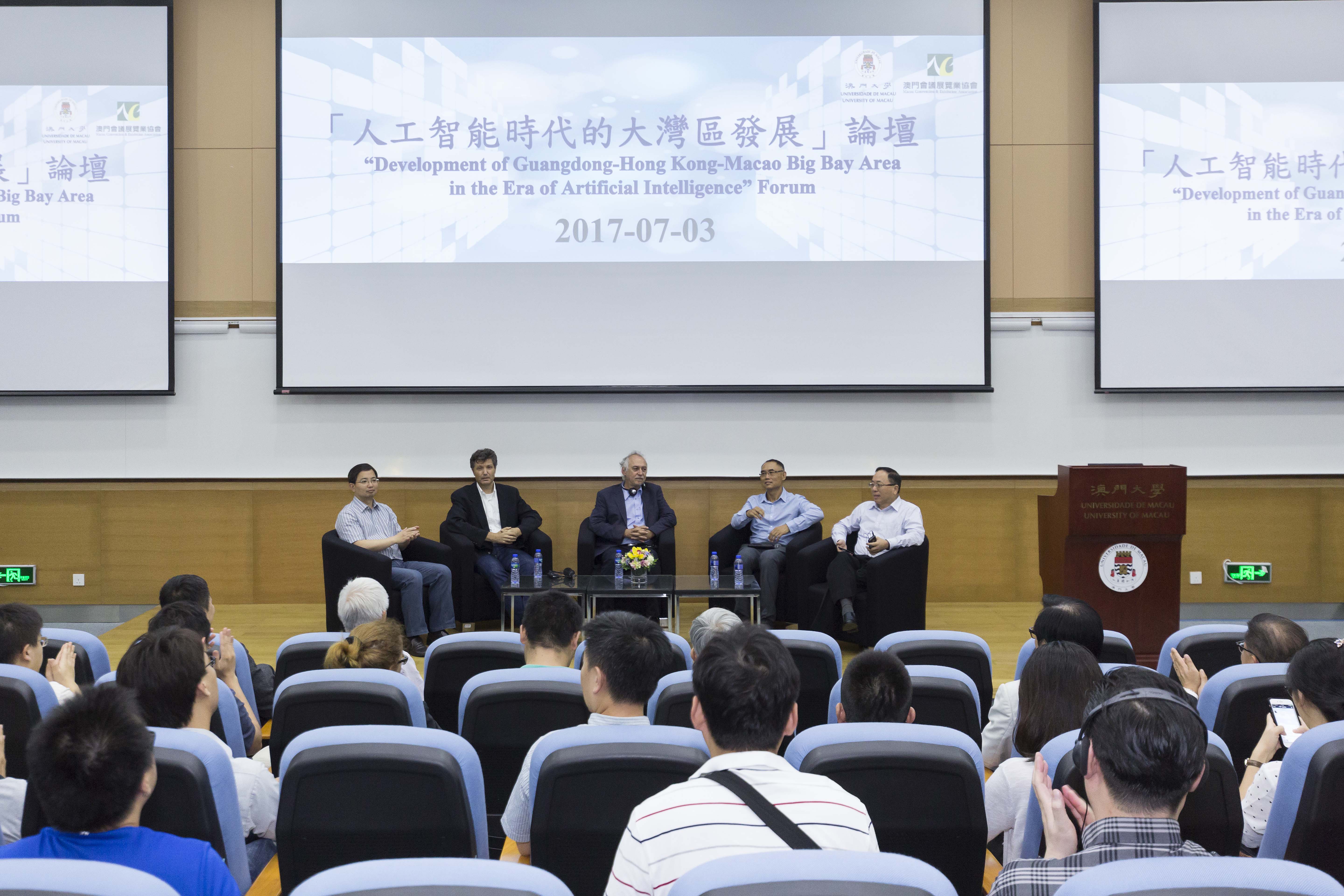 由澳門大學和澳門會議展覽業協會合辦的“人工智能時代的大灣區發展"論壇今(3)日於澳大舉行。南京大學教授及國家教育部長江學者特聘教授周志華、香港科技大學講座教授兼新明工程學教授楊強剖析人工智能的前沿技術,如何有助粵港澳大灣區發展。論壇吸引眾多人工智能專家學者、澳大師生及公眾參與。