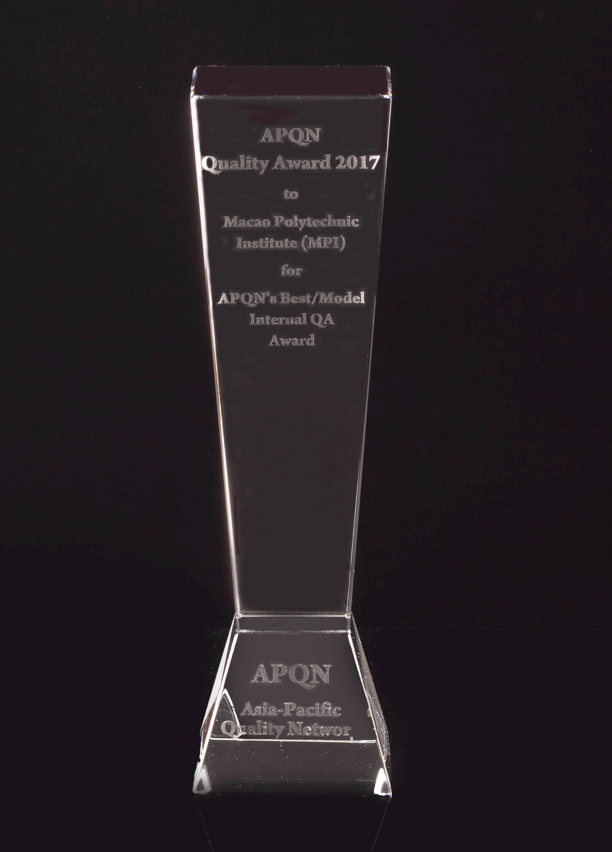 澳門理工學院於早前出席在俄羅斯莫斯科舉行的2017年亞太地區教育質量保障組織(Asia-Pacific Quality Network, APQN)年度大會,會上宣佈並向理工學院頒發“亞太地區教育質量獎”(APQN Quality Awards)之《最佳內部質量保證獎》(APQN’s Best/Model Internal Quality Assurance Award),這是繼2015年後,澳門理工學院再次榮獲 “亞太地區教育質量獎”,也是香港及澳門首家榮獲此國際殊榮的高等院校,為澳門增光。