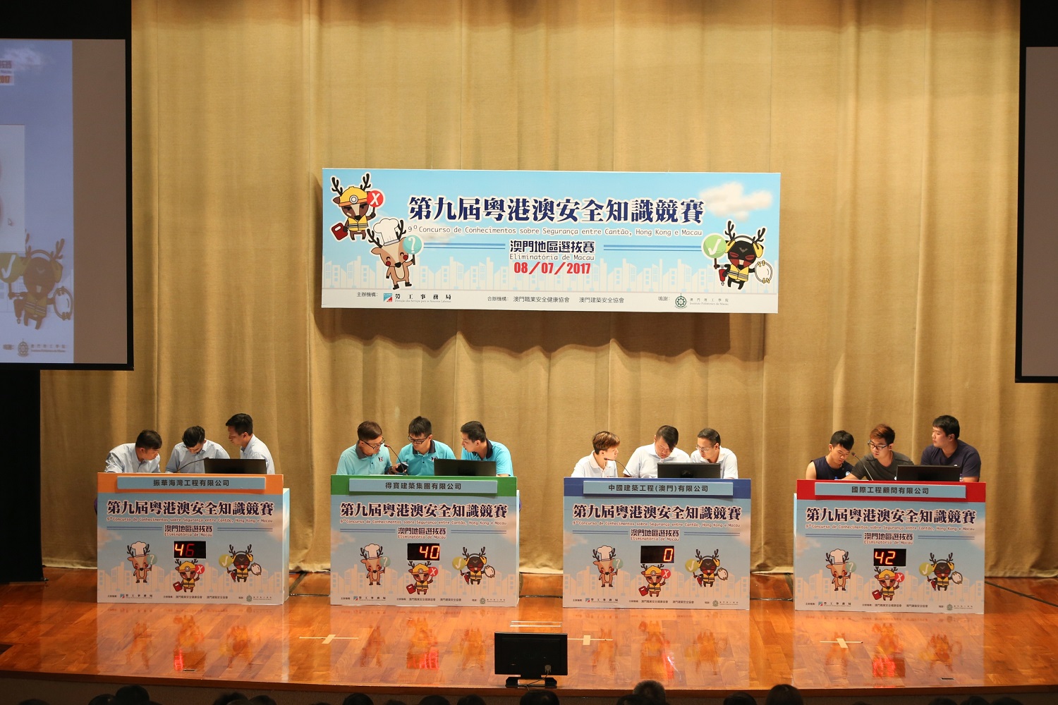 由澳門勞工事務局、廣東省安全生產監督管理局及香港職業安全健康局合辦的「第九屆粵港澳安全知識競賽」將於今年十月在澳門舉行。競賽的目的是透過問答比賽,讓在職人士加深認識和掌握有關職業安全與健康的知識,從而預防工作意外和職業病的發生。為了選出代表澳門的隊伍參加競賽,勞工事務局已於本年7月8日(星期六),假澳門理工學院禮堂舉辦「第九屆粵港澳安全知識競賽」澳門地區選拔賽。