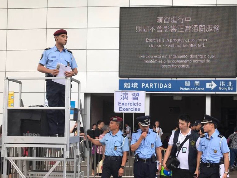 治安警察局聯同澳門保安部隊事務局於今天(7月17日)在關閘邊檢大樓舉行之出入境系統事故演習順利完成,是次演習目的為測試當前出入境通關資訊系統,與各部門於發生系統事故時之通報、應對和協作等應變能力。