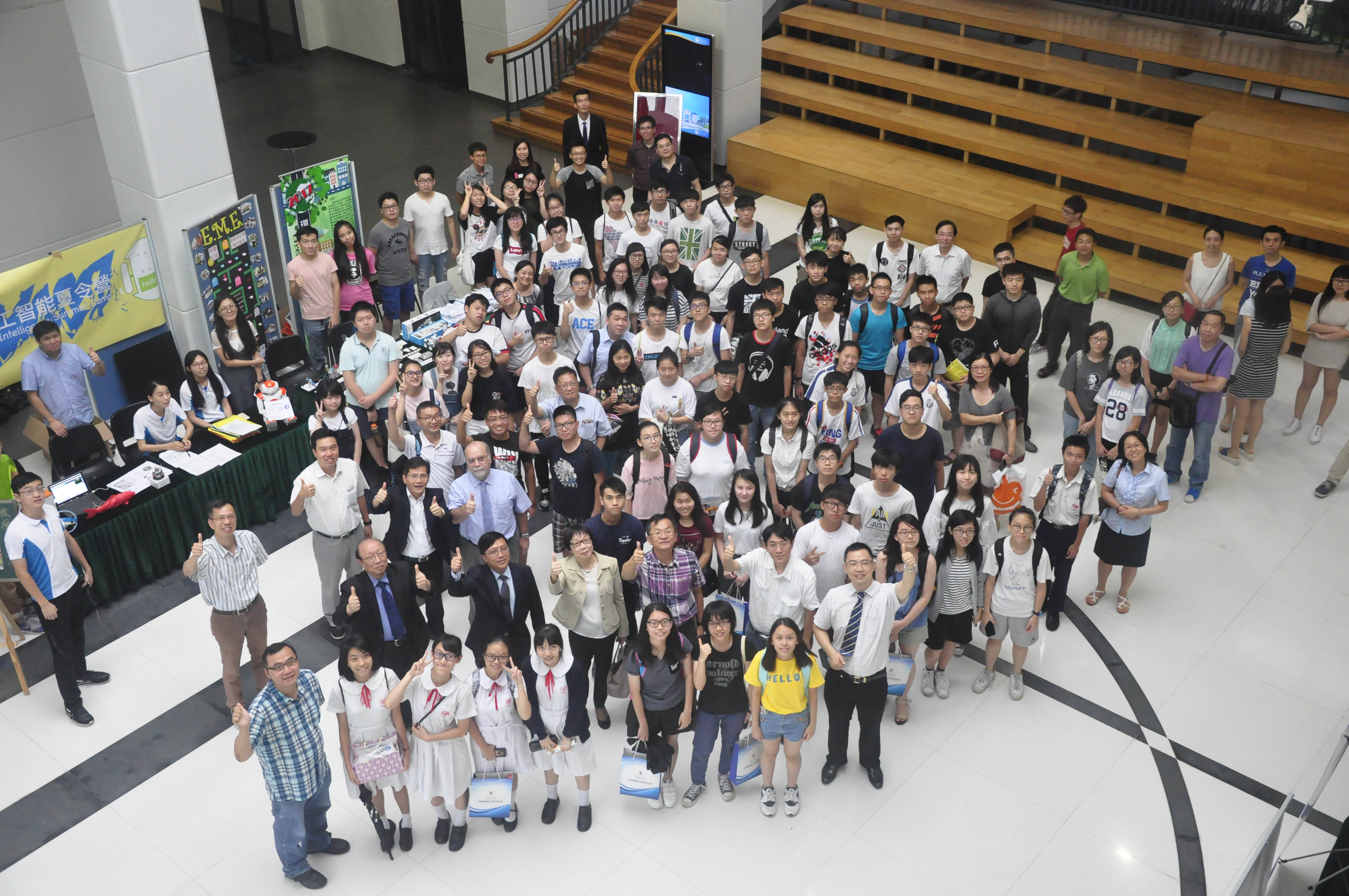 今屆六個科普夏令營圍繞不同主題,分別有“土木工程夏令營"、“四軸飛行器三維重構夏令營"、“計算機視覺與人機交互夏令營"、“無線科技研習夏令營"、“機器人與人工智慧夏令營"及“環保交通工具夏令營"。開營儀式上,更設有不同夏令營的簡介攤位,以展示往屆學生的成果,吸引一眾在場學生及家長駐足觀看,瞭解學習內容。