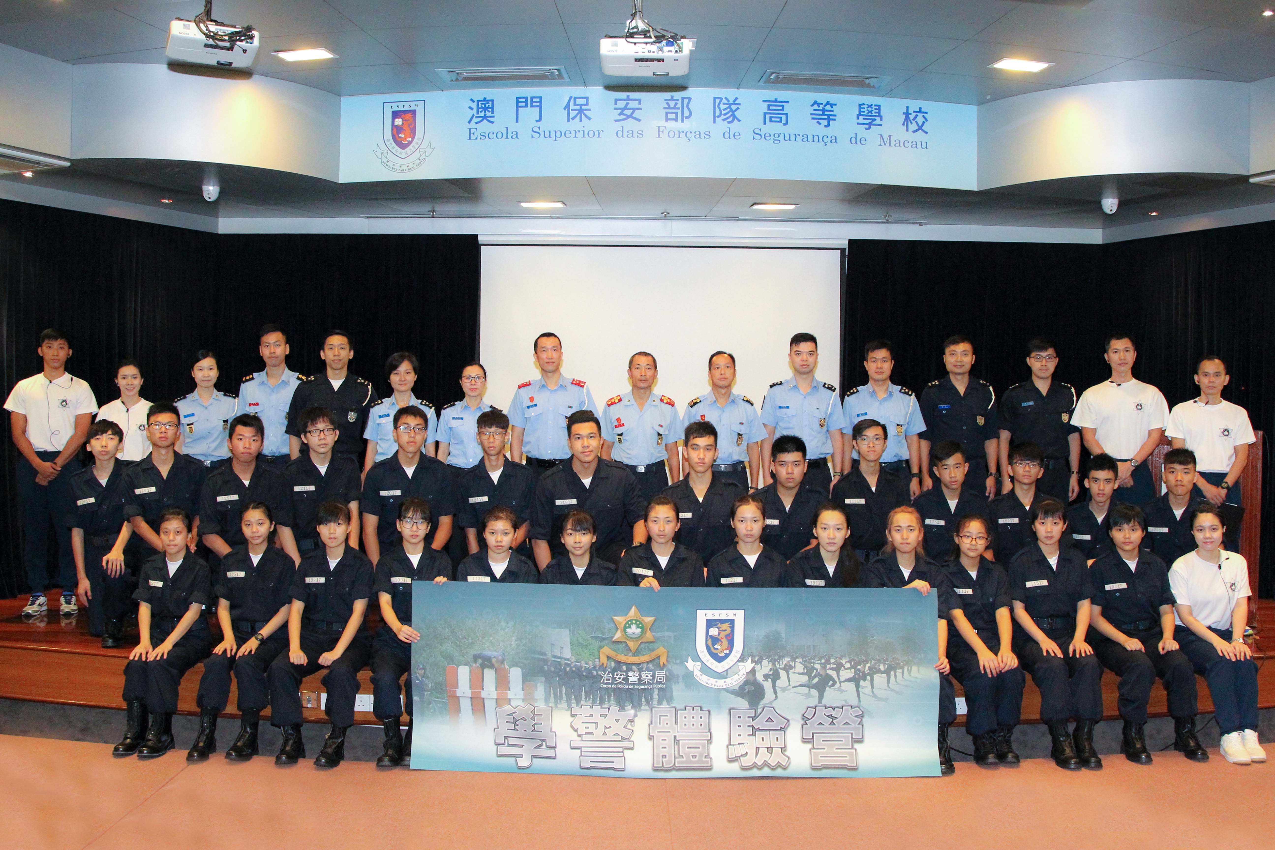 為讓青少年善用暑假餘暇,在7月25日至8月24日期間,治安警察局與澳門保安部隊高等學校合辦多班為期三日兩夜的「2017年青少年學警體驗營」活動,讓參與活動的學員體驗以培訓保安學員為基礎的一系列法律知識講座、步操訓練、體能訓練、野外定向、夜間巡邏當值、認識警用裝備、參觀警犬隊訓練、參觀警隊各前線單位等,讓同學們對保安學員的日常訓練和警隊的警務工作有深入的了解。