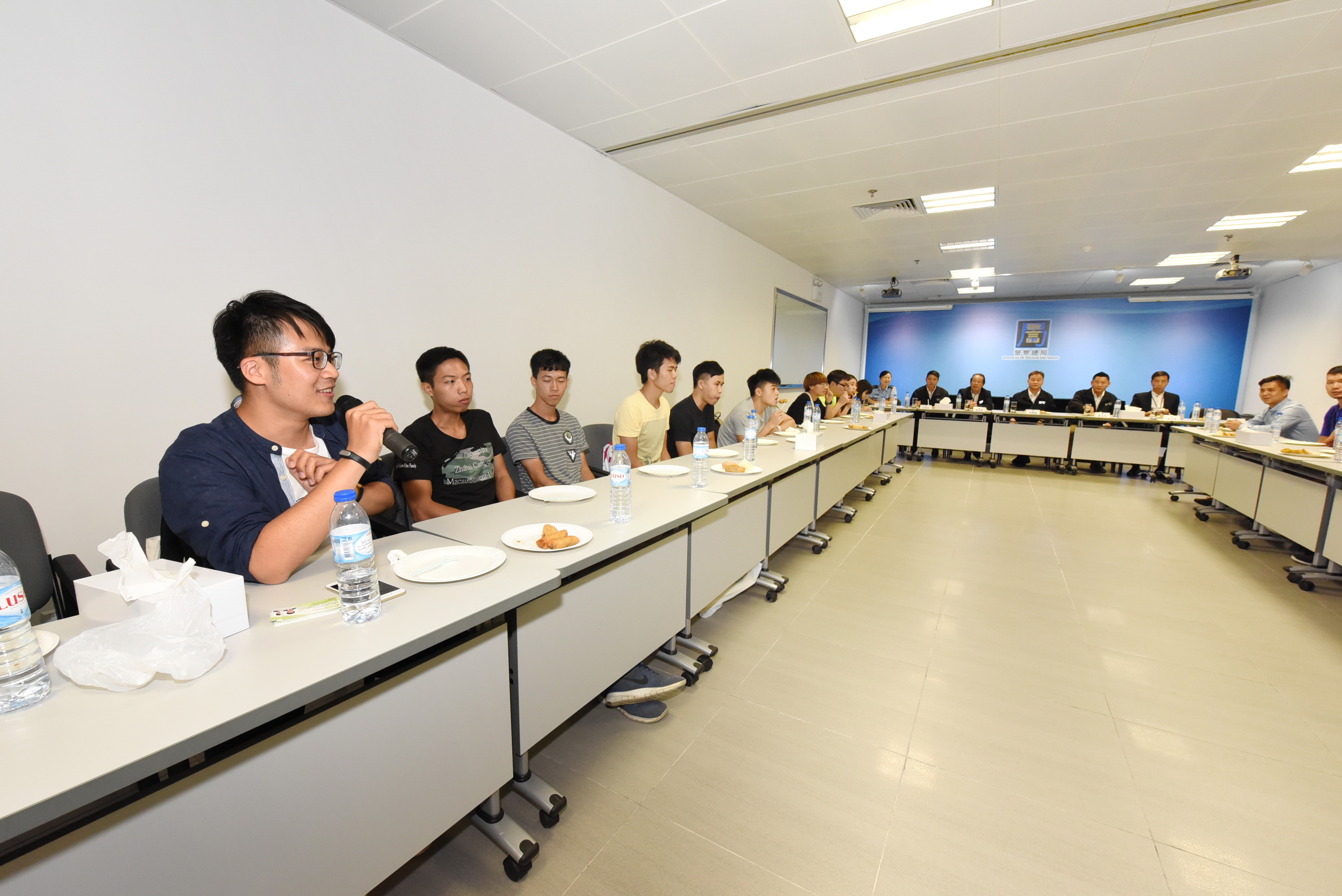 及後,警察總局馬耀權局長、司法警察局劉少剛職務主管、澳門保安部隊高等學校李嘉儀副警司、澳門保安部隊事務局馬寶珠警長亦與一眾新青協成員就投考保安部隊、電訊詐騙等時事熱論進行交流座談,氣氛熱烈。馬局長表示,青少年充滿活力,勇於挑戰,敢於創新,是社會未來的主人翁,為此,保安部隊一直致力給予青少年一個良好、安全的成長環境,並重視他們的反饋,希望透過是次交流,能促進警民合作,加深青少年與保安部隊間的暸解。張志雄、施妮娜副理事長亦感謝各保安部門為新青協及屬下分會提供多渠道的交流活動,加深學生們對保安範疇的暸解,有助他們做好職業規劃,冀日後有更多訪談機會。