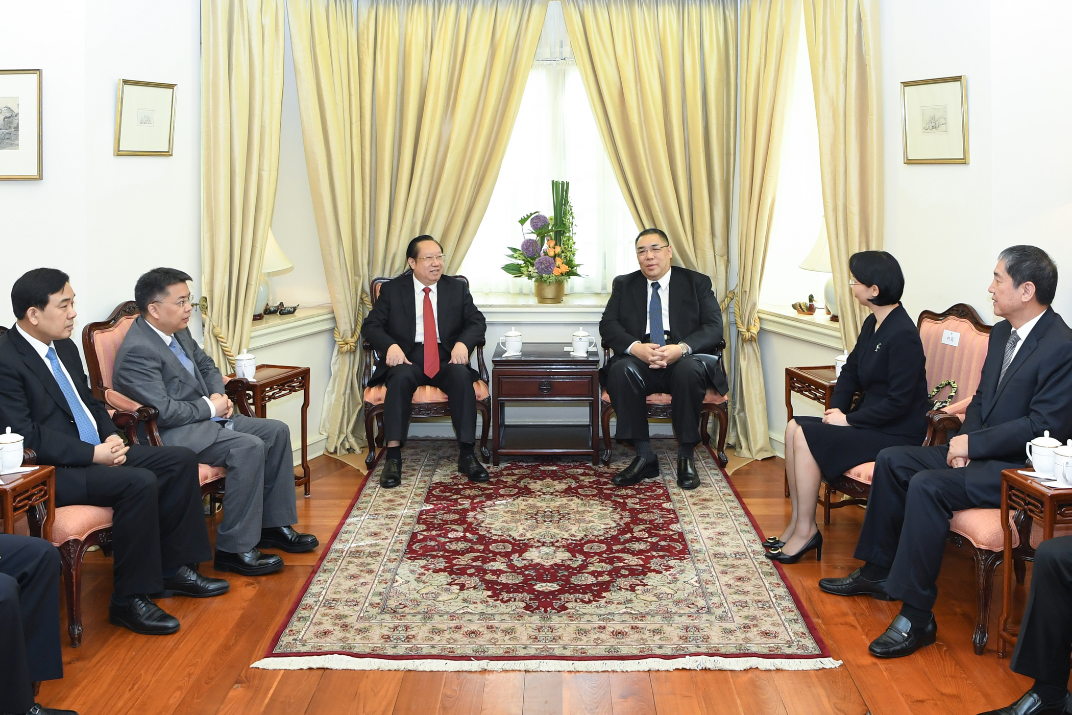 參與會見的包括行政長官辦公室主任柯嵐、新聞局局長陳致平、禮賓公關外事辦公室主任馮少榮;湖北省副省長童道馳、秘書長別必雄、副秘書長聶昌斌、宣傳部常務副部長張海明、湖北省發展和改革委員會主任劉曉鳴等。澳門童軍總會會長、湖北省政協常委馬有恆和澳門童軍總會理事會主席、全國政協委員梁少培陪同會見。