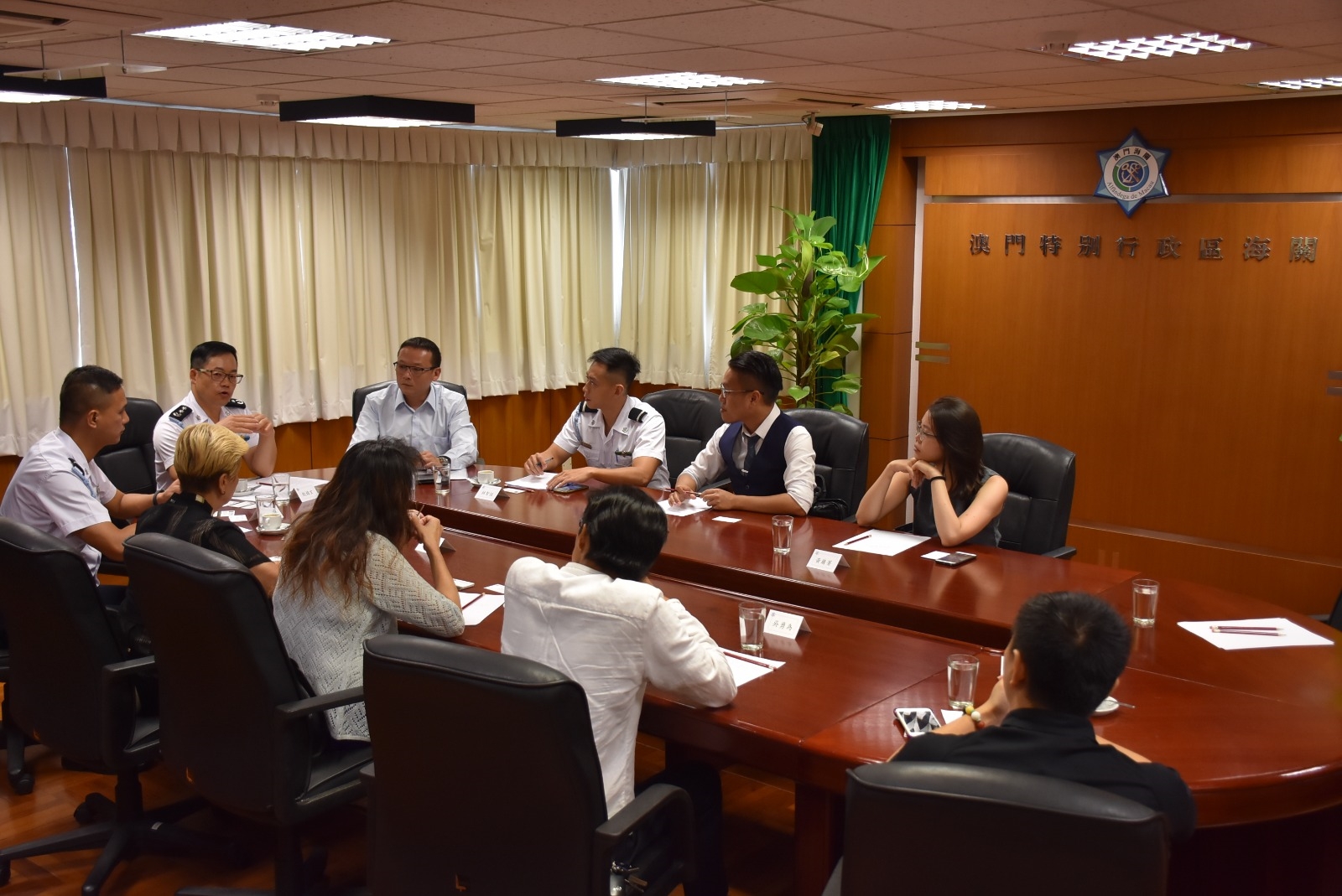 是次出席座談會的人員有海關知識產權廳代廳長殷鎮玄,旅遊局監察處處長梁寶祿,澳門旅行社協會何嘉濠先生及黃爾菁女士,澳門導遊促進會理事長吳勇為先生及監事朱容仟先生,澳門導遊公會主席林秀珍女士及副主席陳燕珍女士。