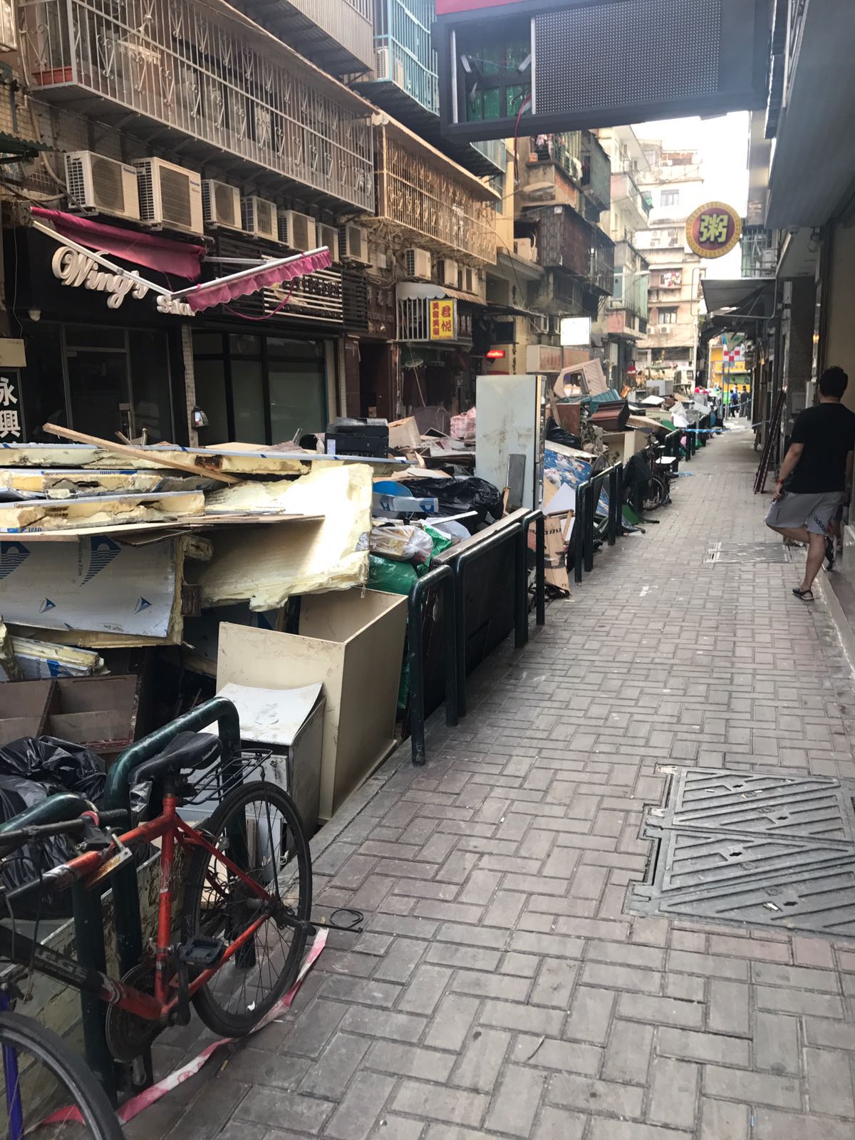 現時首要工作是收集生活垃圾,期望市民配合不要將浸濕的物品直接棄置在店鋪門外,盡量將垃圾分類以及用膠袋盛載及封口,並配合將垃圾棄置到40個指定垃圾收集點(見附表),方便清潔工人及車輛集中運走。