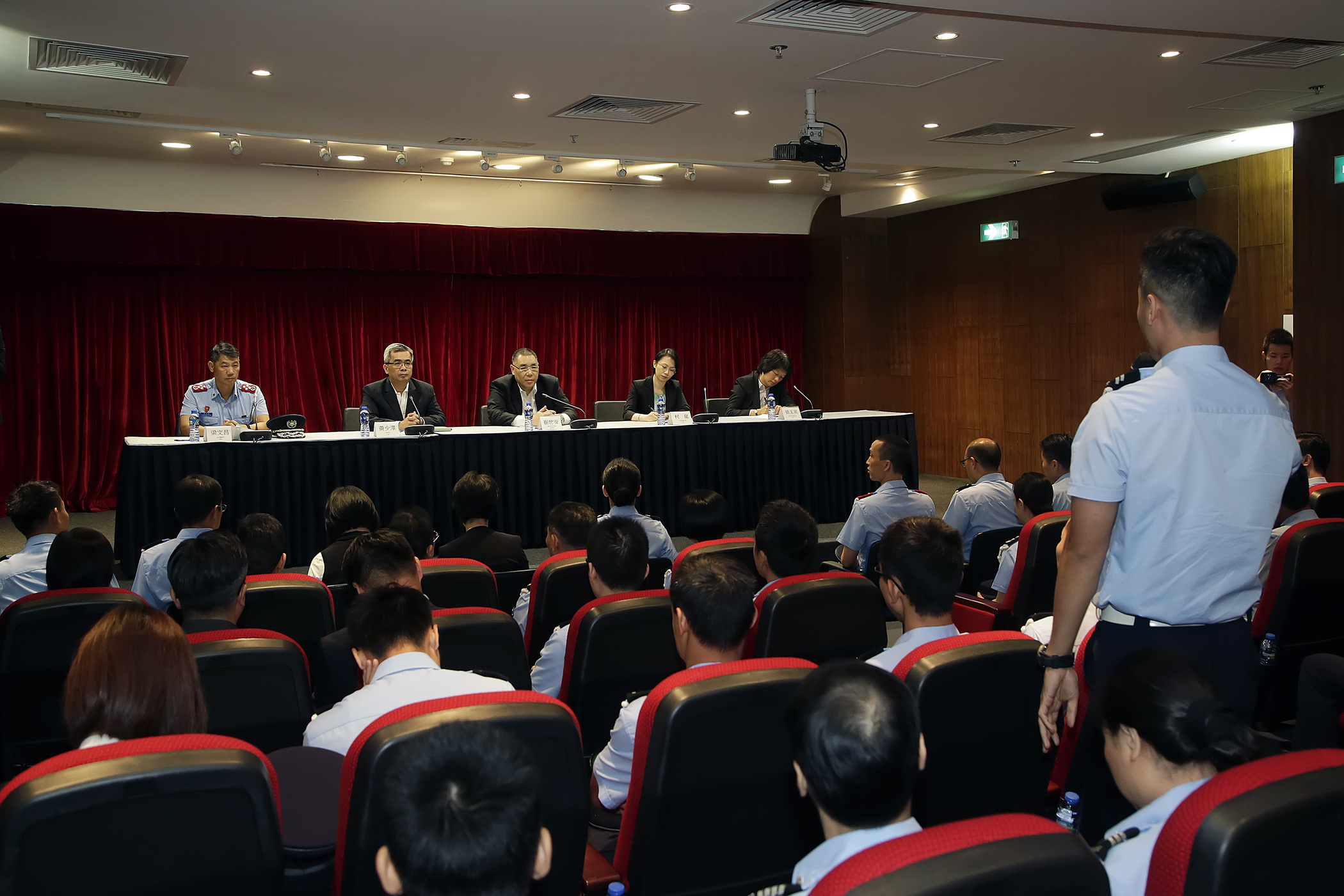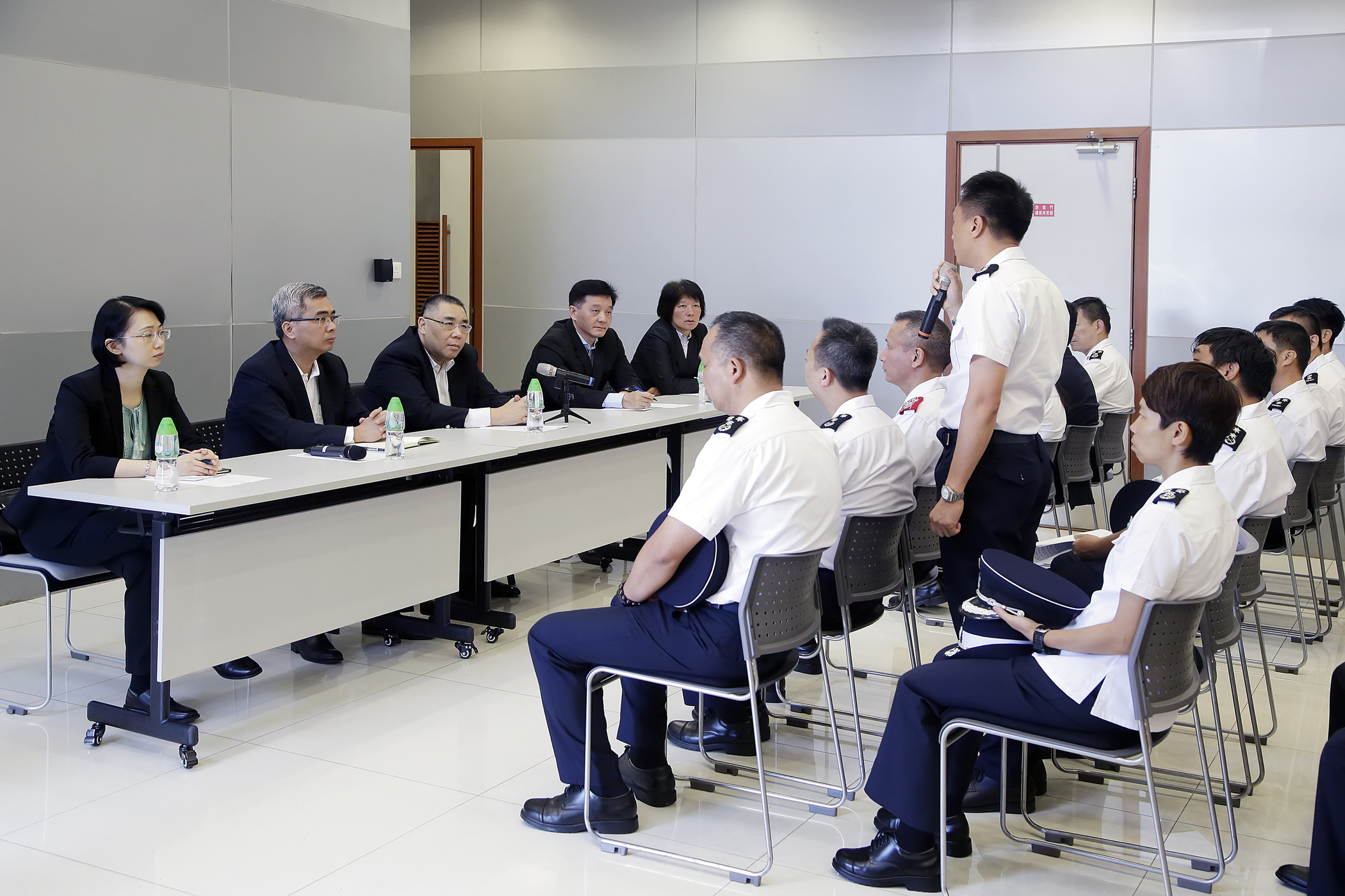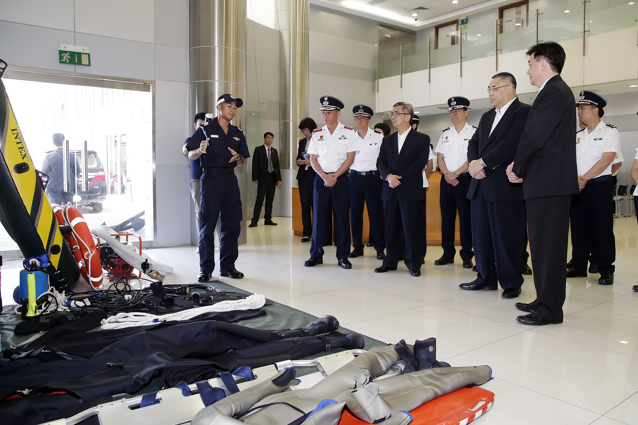 另外,行政長官分別視察了治安警察局、消防局及海關的裝備,再次向黃少澤司長和保安部隊領導表示要盡快完善,增加配備。
