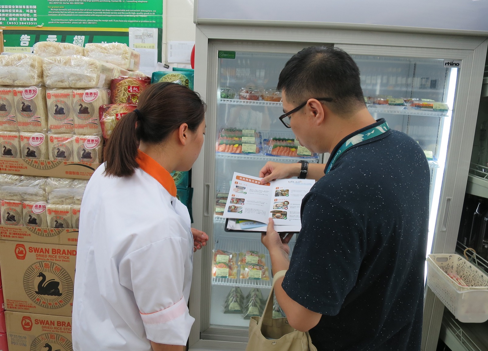 為強化外賣壽司業界的自律管理,確保生鮮即食食品的製作及展示安全,民政總署食品安全中心持續對外賣壽司場所進行食安宣導,並邀請日式及生鮮食品外賣商戶舉行風險交流會議,提醒業界正確的衛生操作程序及注意事項,增強業界對食品安全的認知。