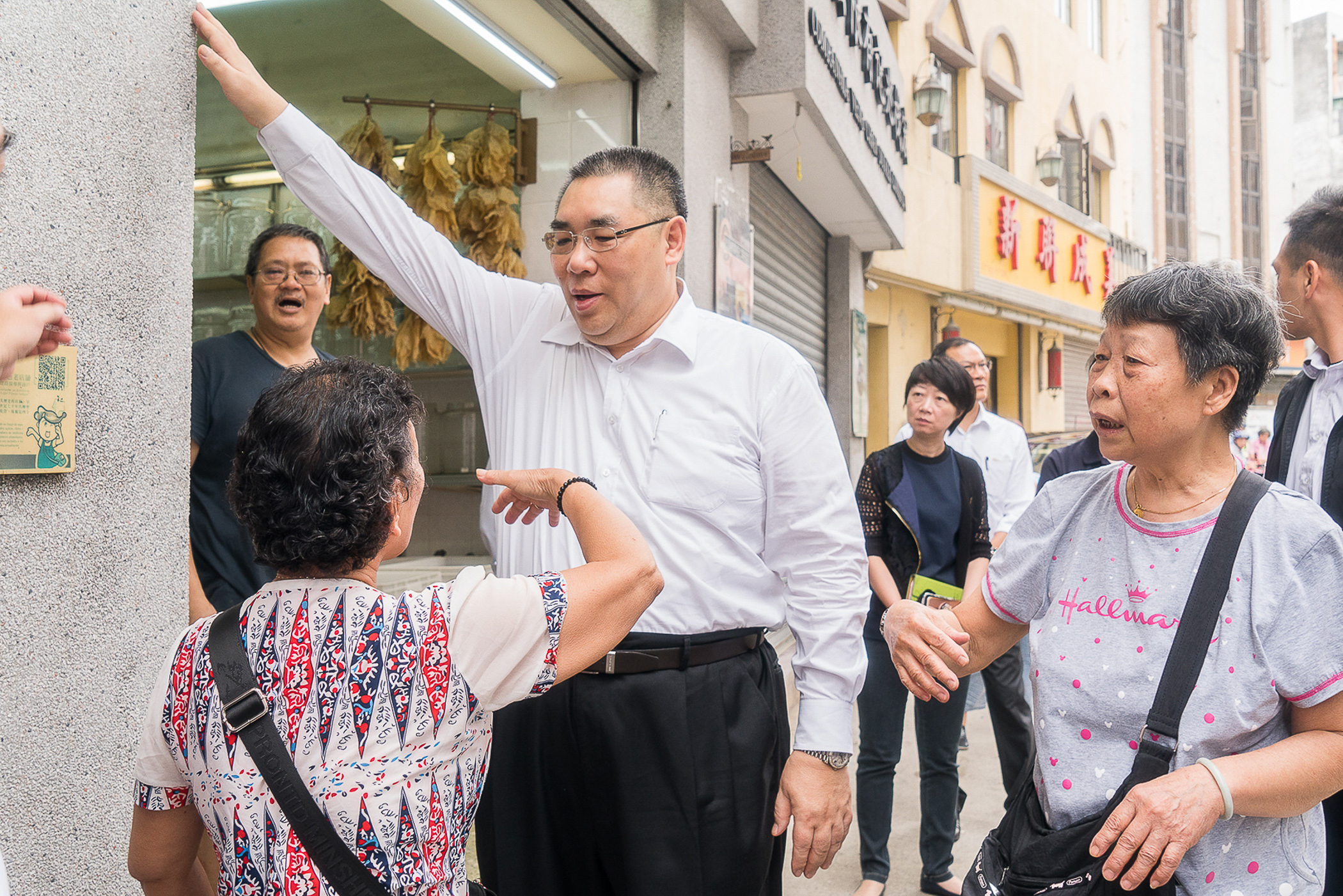 行政長官聯同運輸工務司司長羅立文、土地工務運輸局局長李燦烽,在行政會發言人梁慶庭陪同下,探訪了該區的海味雜貨店、茶葉店、唱片店、鞋店和中藥材店舖等老字號、老街坊,表達親切問候,並向店家了解目前風災後恢復日常生活和營運的進度。