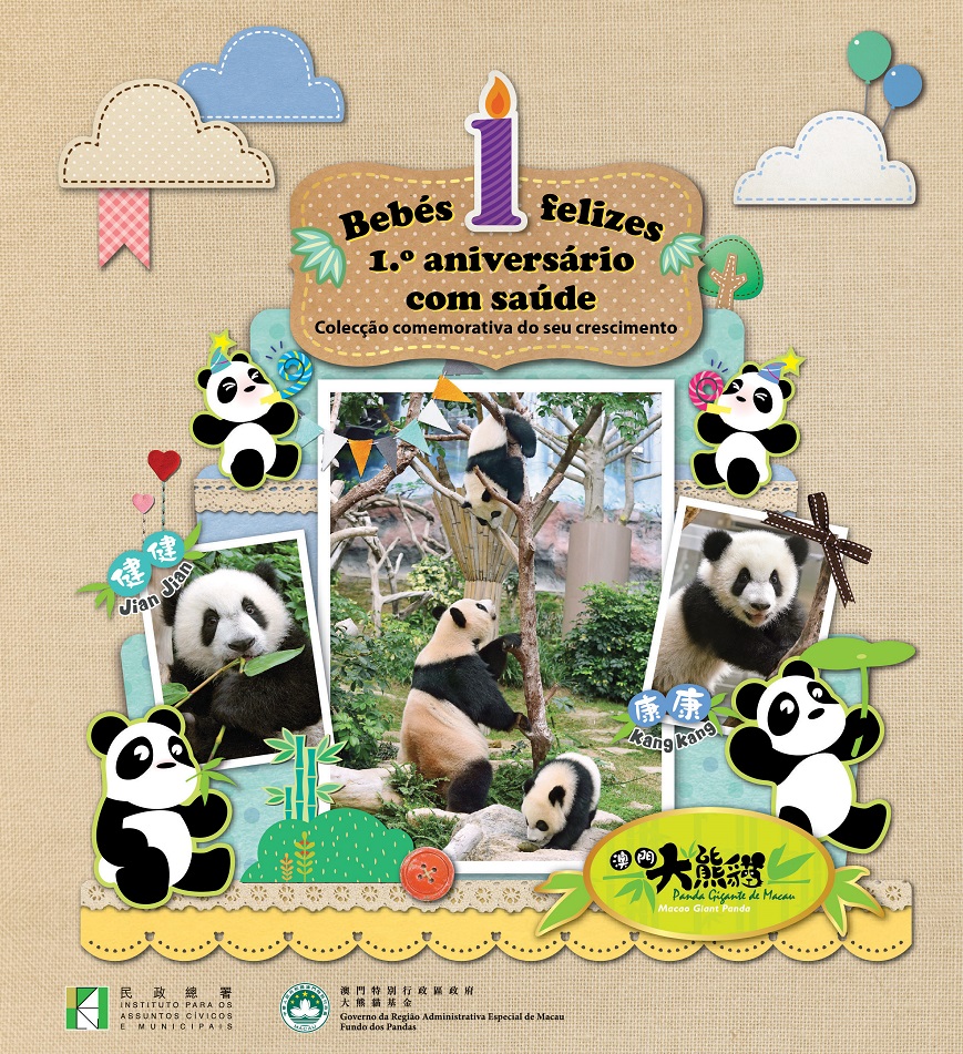 澳門出生的一對大熊貓寶寶“健健、康康",已於六月二十六日迎來牠們的一歲生日。為紀念大熊貓寶寶由出生至今的點點滴滴,民政總署聯同大熊貓基金合作出版《開心寶貝•健康一歲 成長紀念冊》,中、葡文版於優惠期內以七折發售,數量有限,欲購從速。