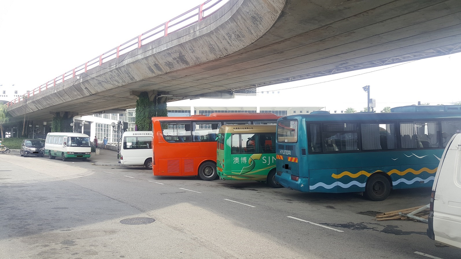 因進行澳門格蘭披治大賽車臨時車房建造工程,10月8日(周日)上午9時至12月2日(周六)海港前地封閉交通及禁止車輛停泊,海港前地近行車天橋的路段分別設置兩個穿梭巴士停泊區供酒店穿梭巴士上落客使用,一個位於往羅理基博士大馬路方向、距離“外港碼頭”巴士站約120米之處,另一個則位於“外港碼頭”巴士站對面的巴士落客區旁邊的位置。