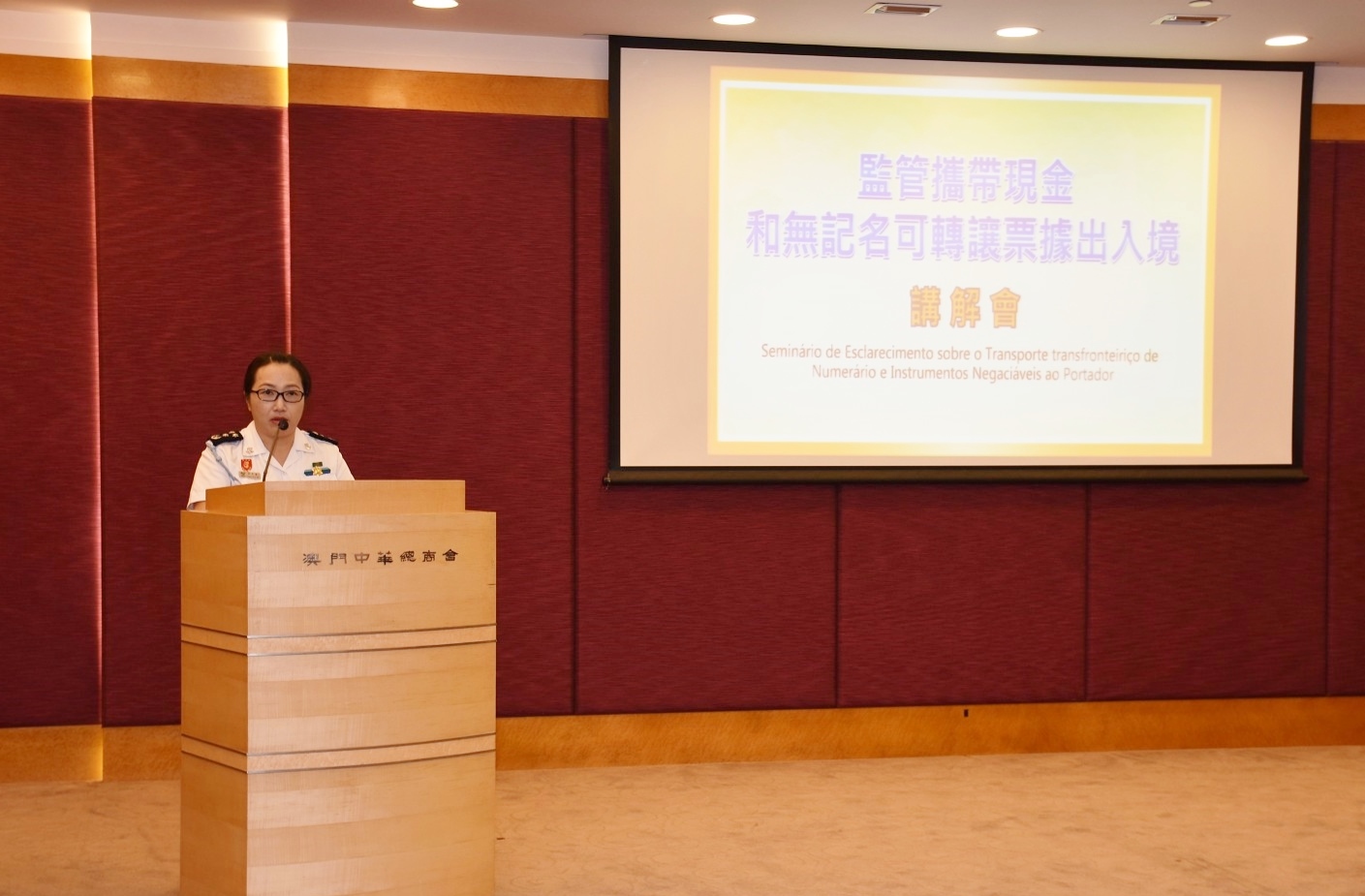 第6/2017號《監管攜帶現金和無記名可轉讓票據出入境》法律將於11月1日實施,為讓社會各界對法律有進一步的了解和認識,確保法律有序施行,海關於今日(18日)下午在澳門中華總商會舉行相關法律講解會,就新法內容及相關細節向業界進行講解。