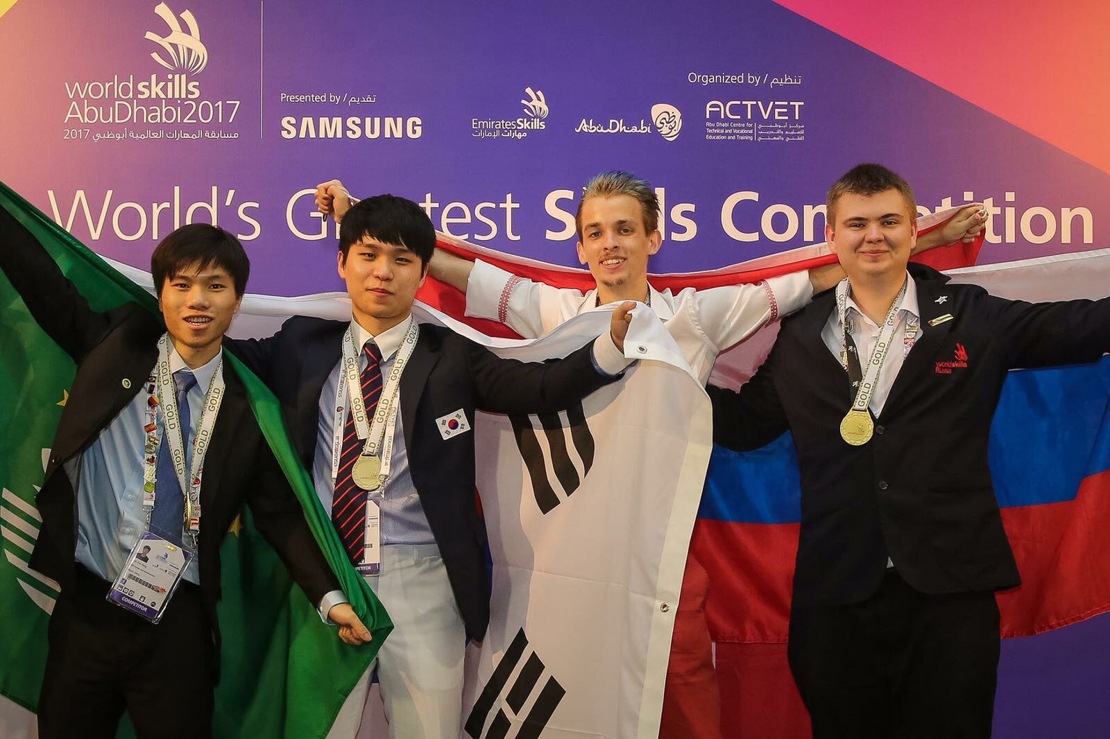 帶領澳門代表團赴阿聯酋阿布達比參加競賽的勞工事務局局長黃志雄,對青年選手取得優異成績表示衷心祝賀,並對所有合辦單位和參與培訓工作的專家和評判致以衷心感謝,勞工局會繼續加強職業培訓工作,為本澳培育和儲備切合社會需要的人力資源。