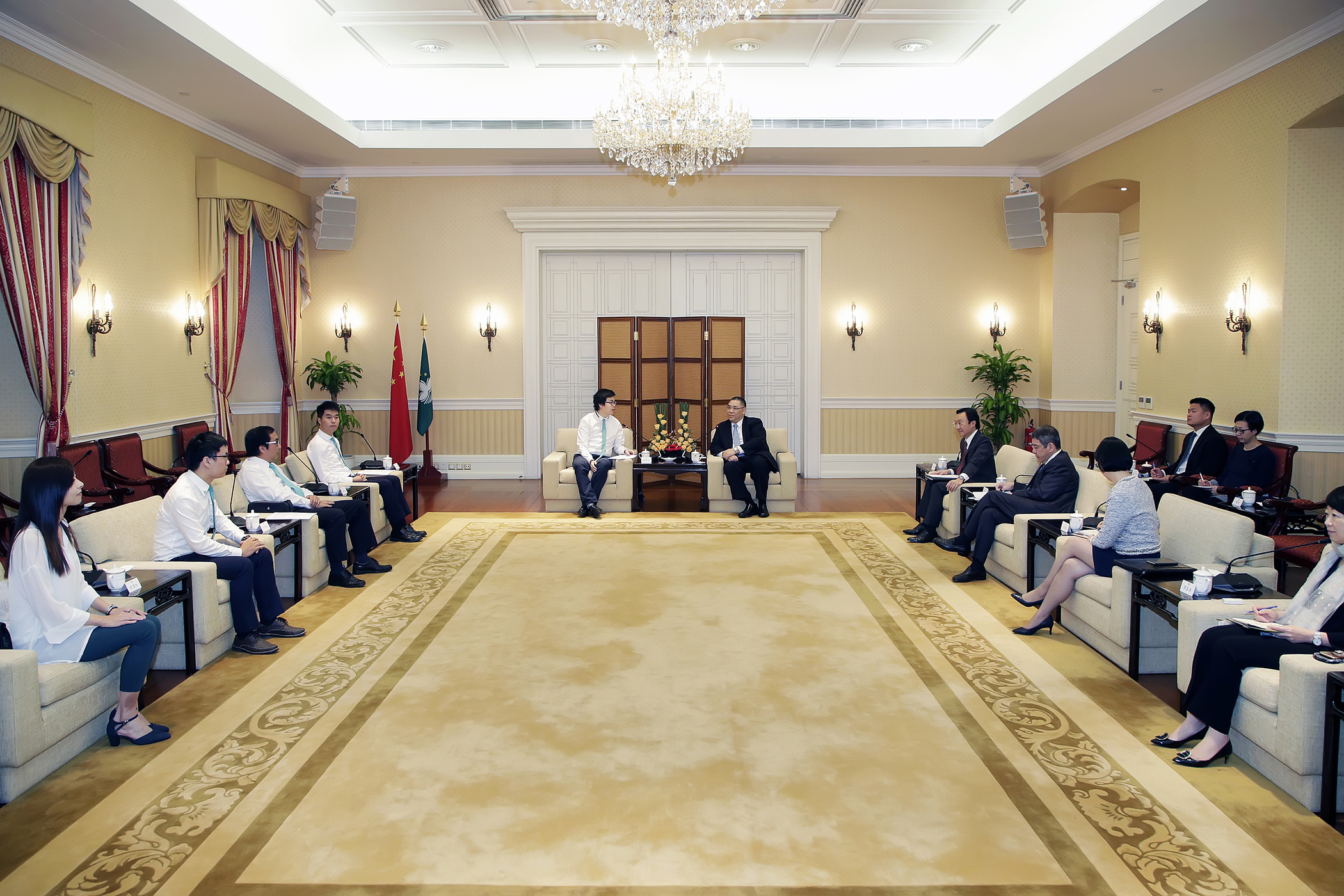 參加會見的還有社會文化司司長譚俊榮、運輸工務司司長羅立文、行政長官辦公室主任柯嵐、新澳門學社理事李國強和甘雪玲等。